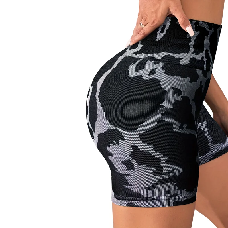 Seamless Black and White Color Blocking Design High Waist Breathable Sports Yoga Workout Women's Shorts