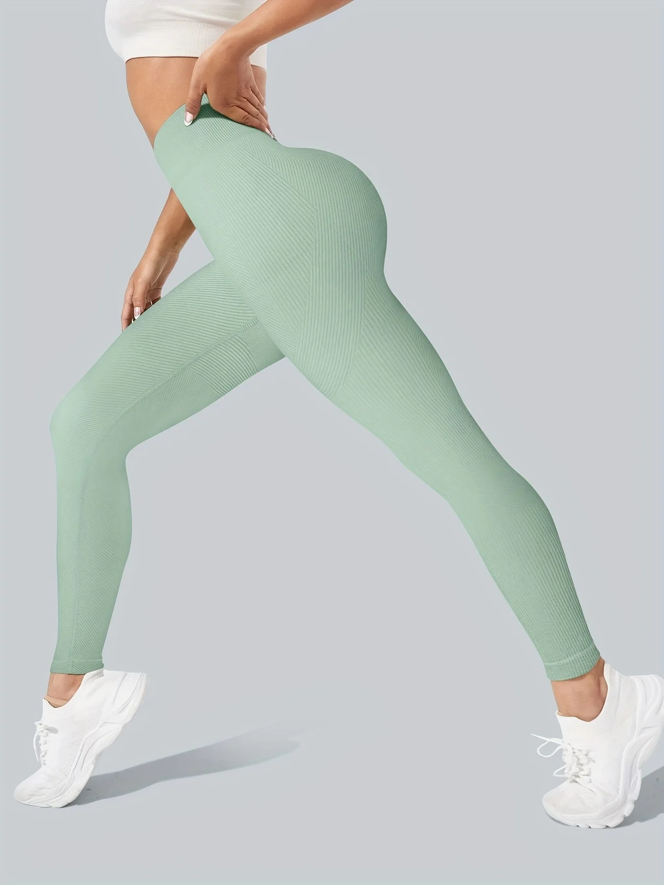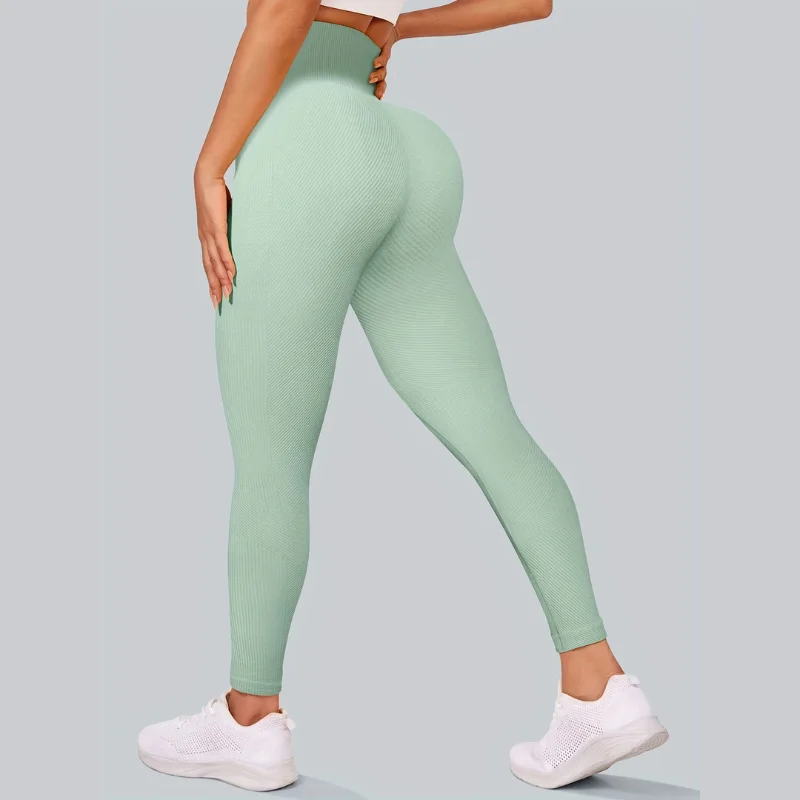 Seamless Knitted Green Tight Fitting Breathable Quick Dry Four Way Stretch High Waist Yoga Pants for Woman Sports