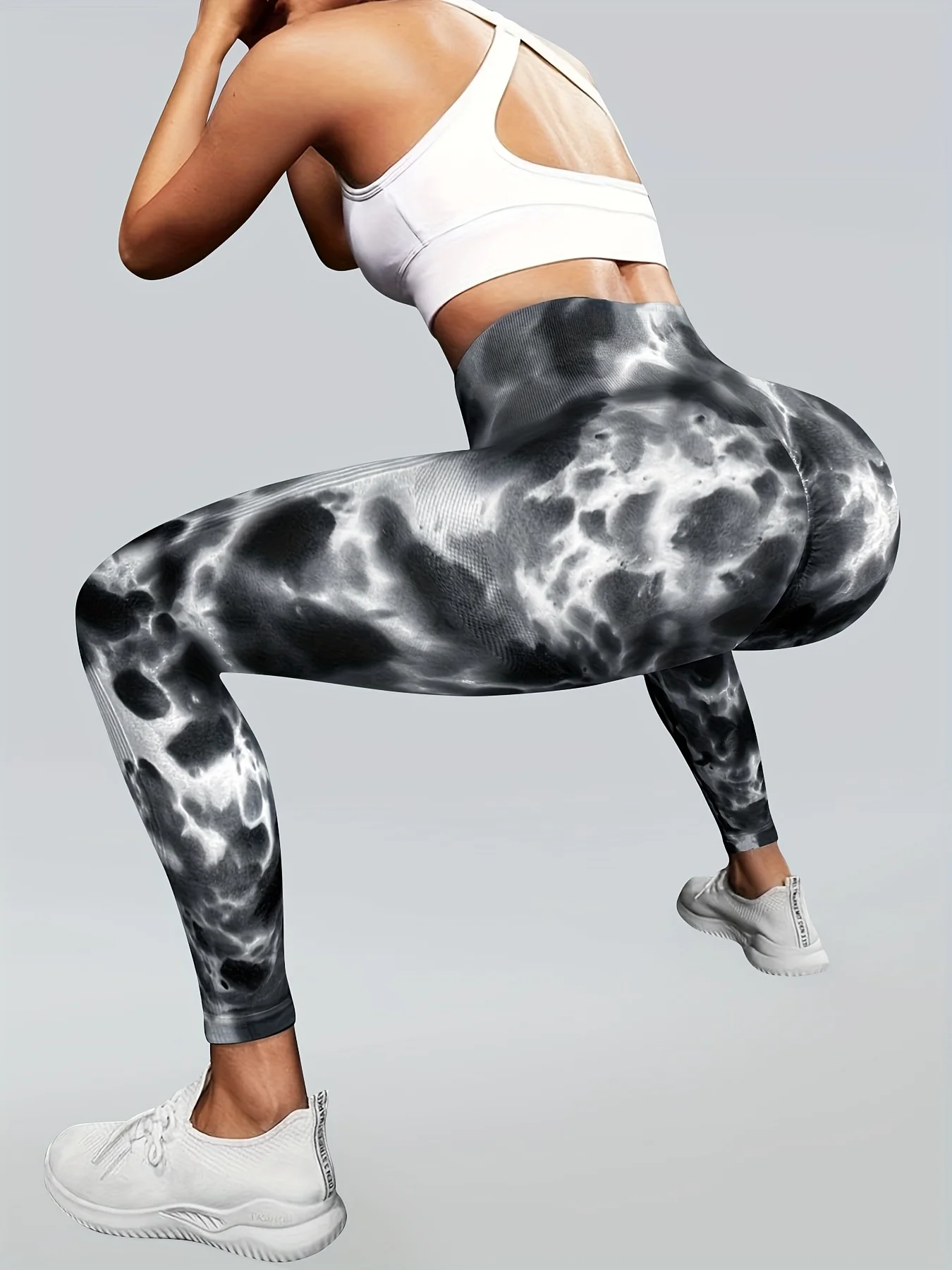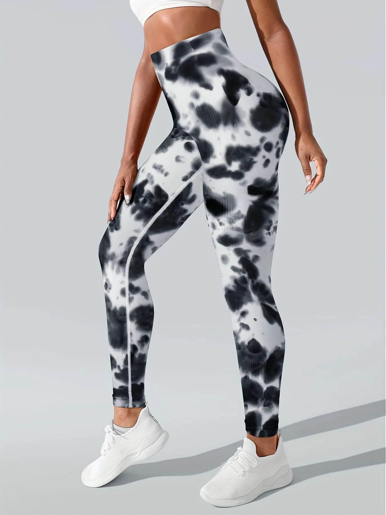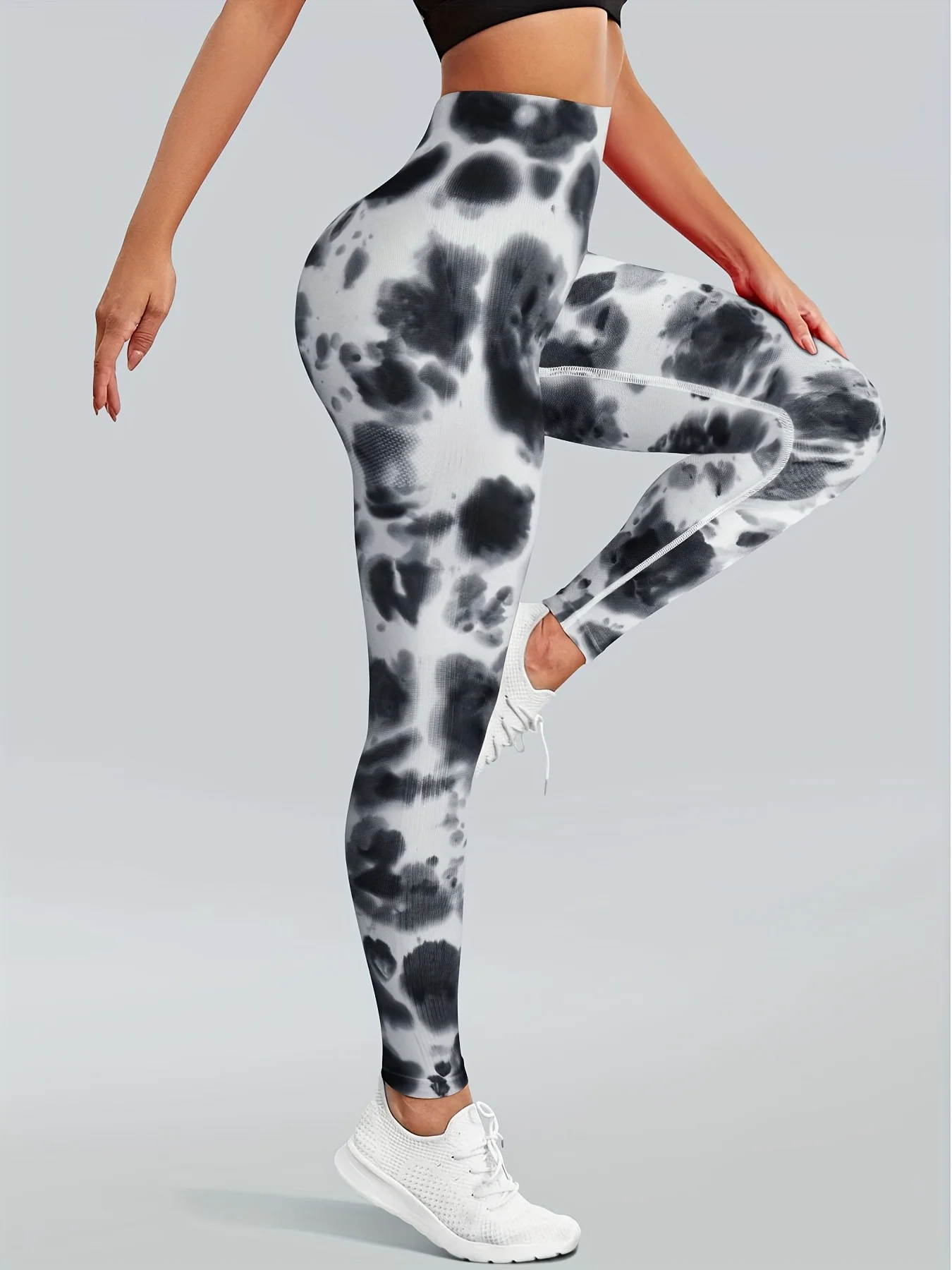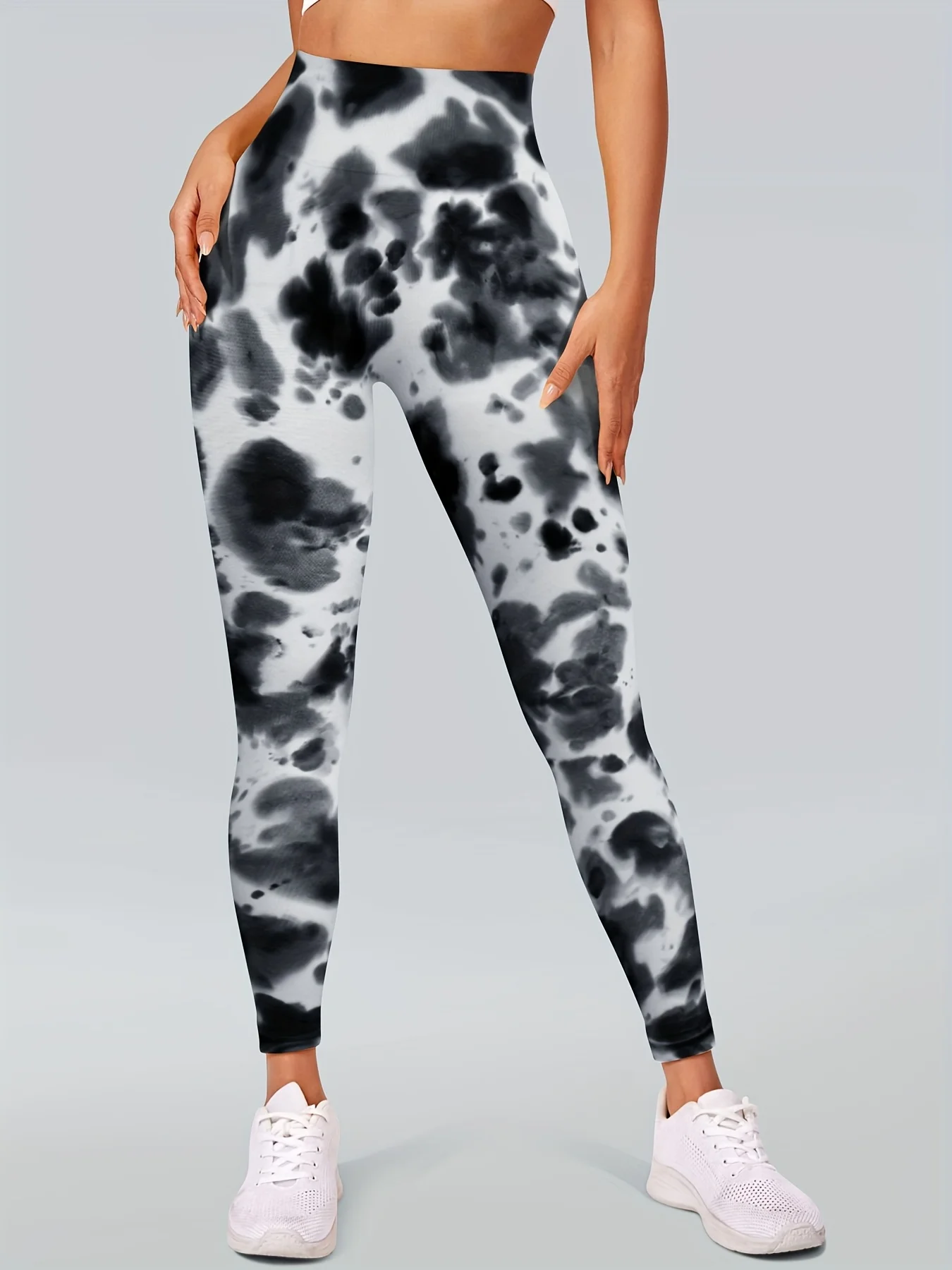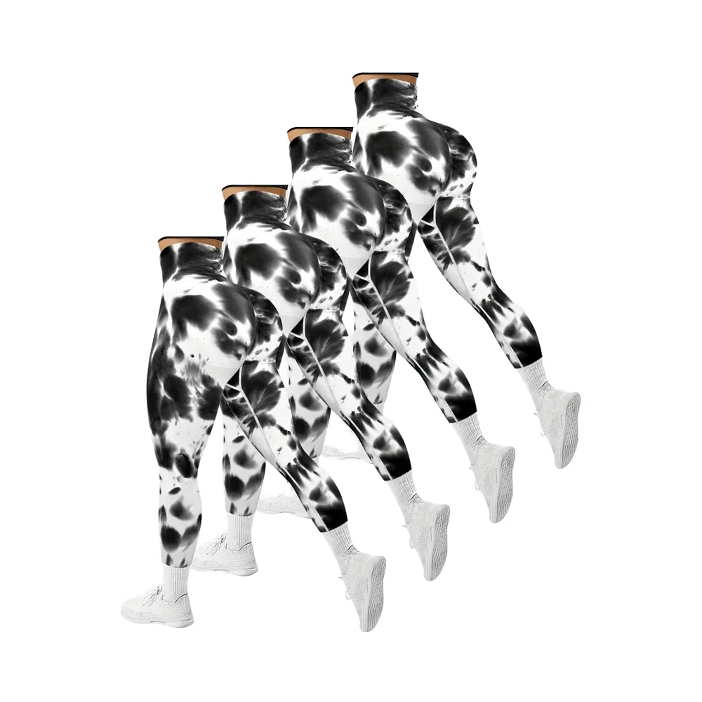 4 Piece Women's High Elastic High Waist Slim Fit Breathable Seamless Tie Dye Black and White Ink Wash Yoga Pants