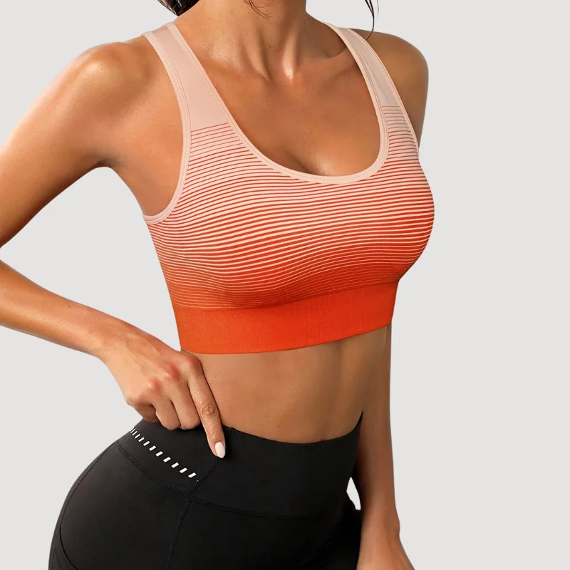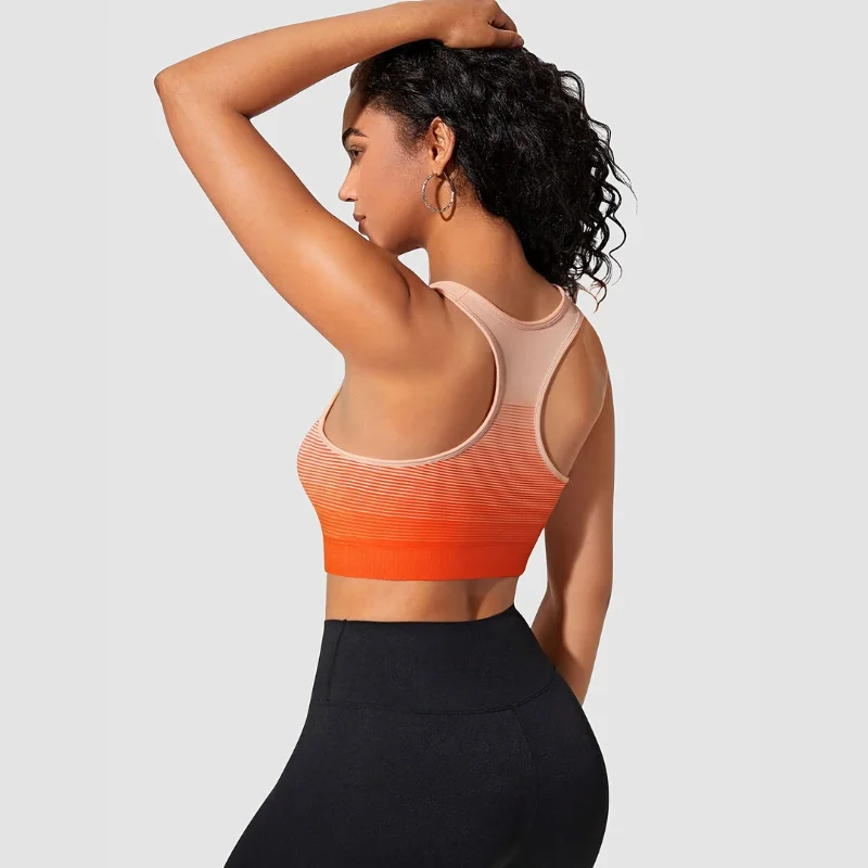 Women's Sports Outdoor Yoga Bra Orange Gradient Thin Striped Non-adjusted Straps High Support for Adults