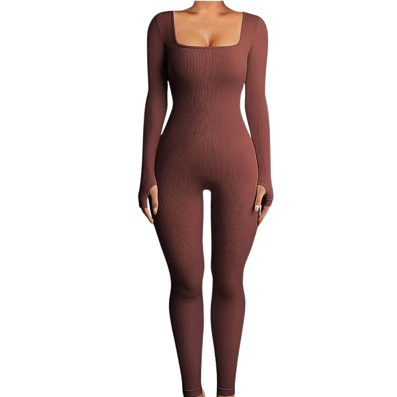 Women's One Piece Long Sleeve Tight Fitting High Elasticity Lightweight Breathable Sports Yoga Bodysuit