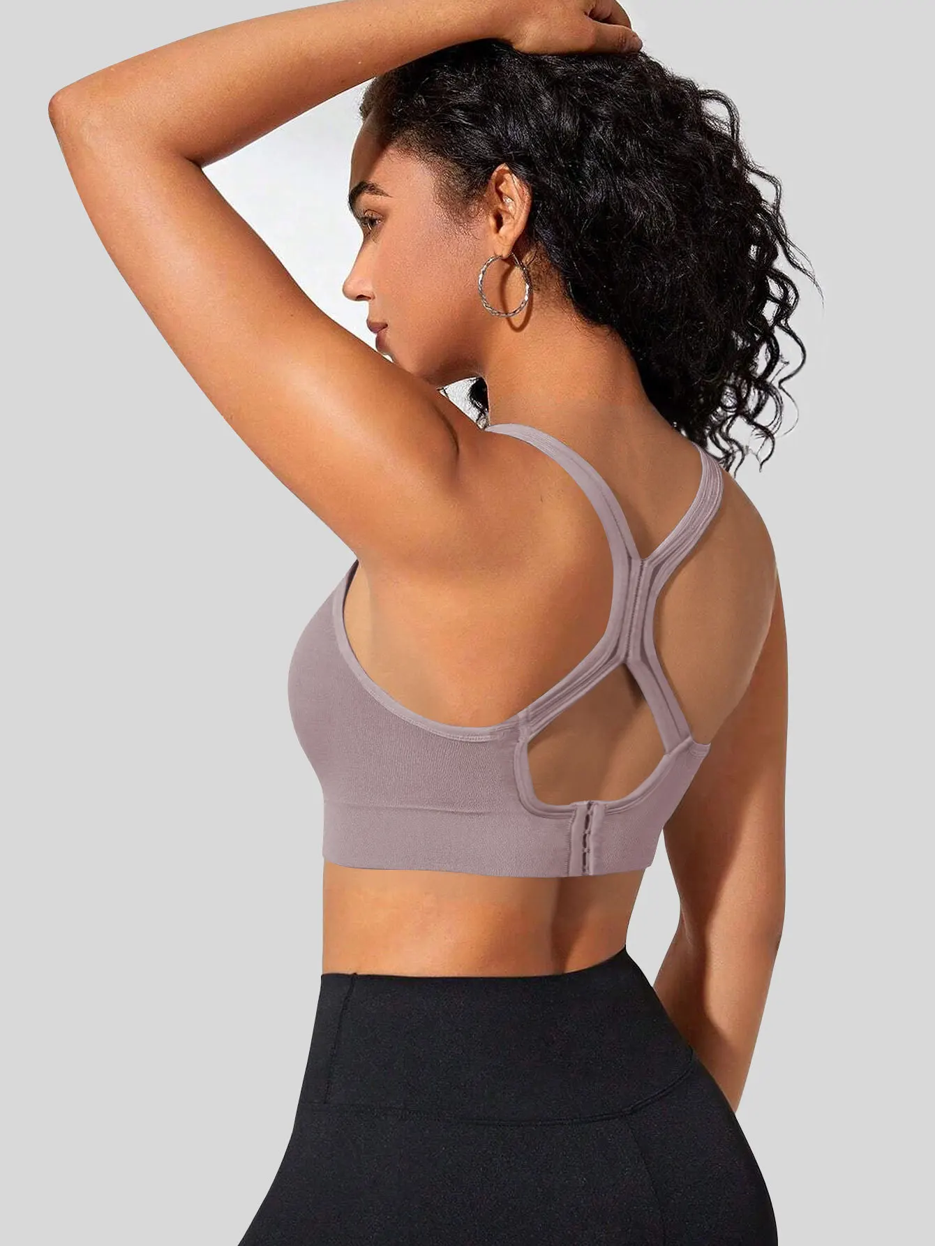 New Fashion High Quality Seamless Sports Bra for Women High Elasticity Shockproof Hook and Eye Closure Stylish Back Design