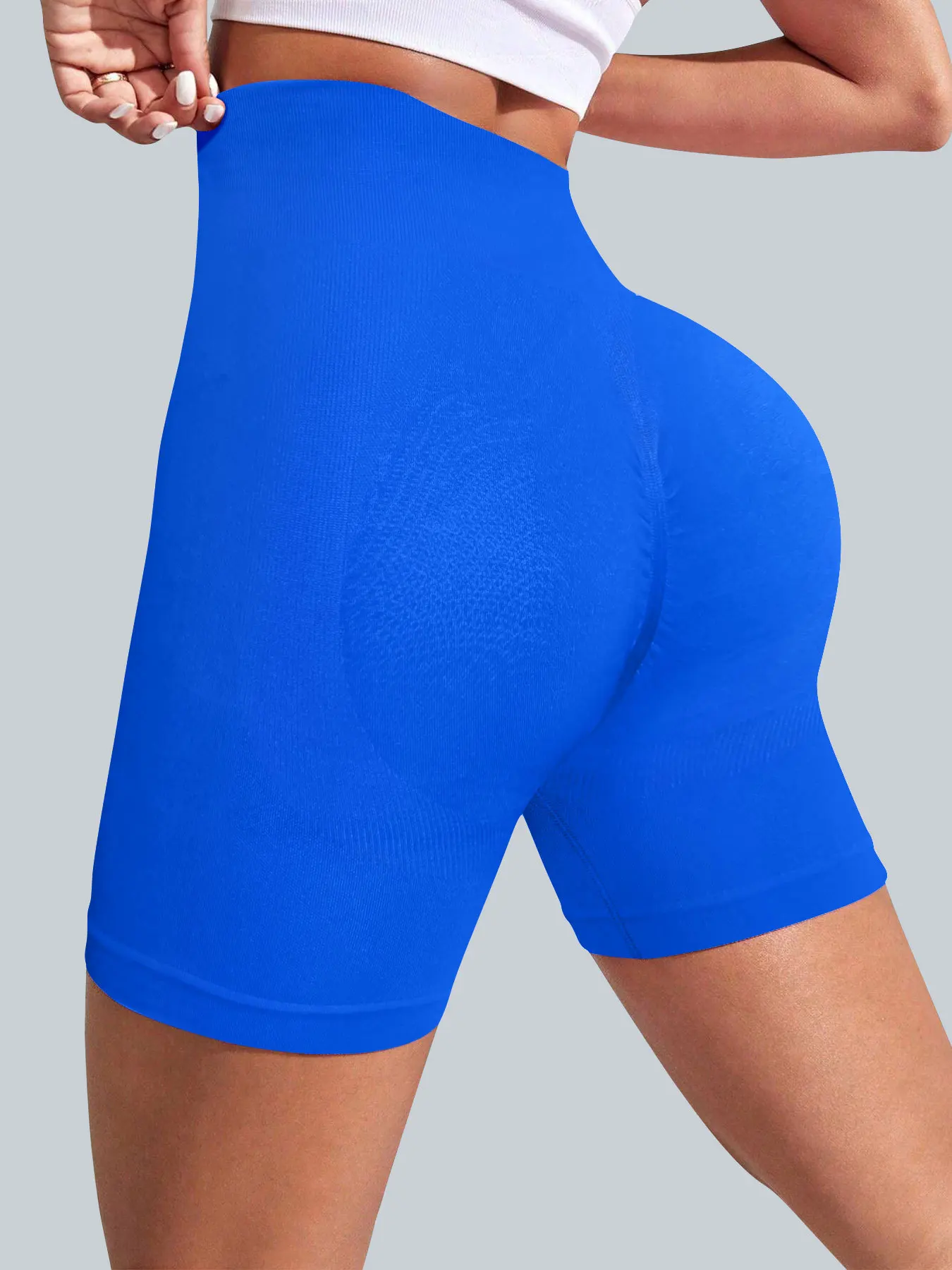 Summer Dark Blue High Waist and Elastic Yoga Shorts for Women Breathable Sweat Absorb Tummy Control Butt Lifting