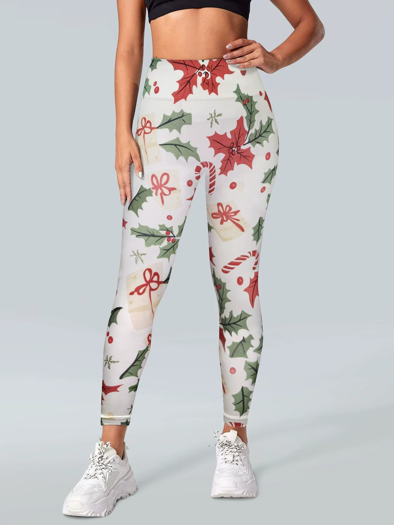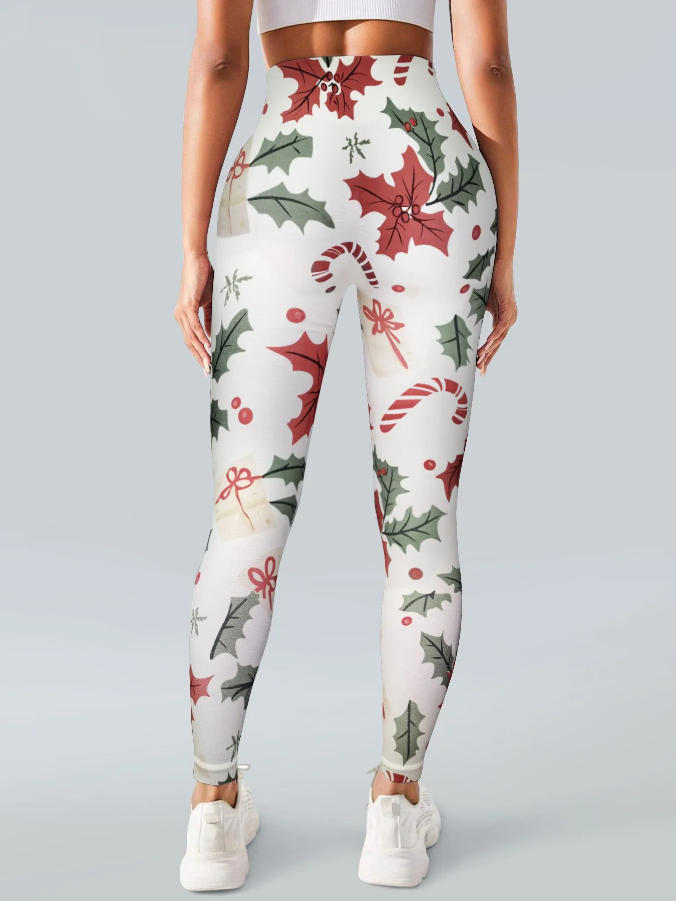 Maple Leaf Print High Elasticity High Waist Tummy Control Yoga Leggings for Women Workout Yoga and Running