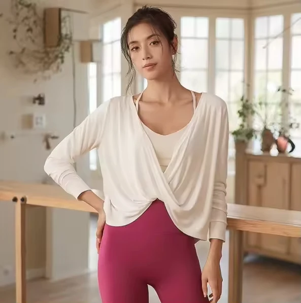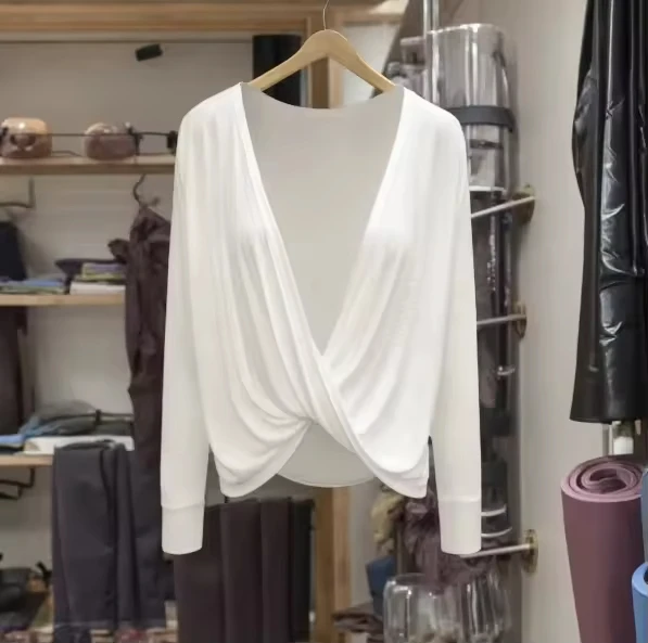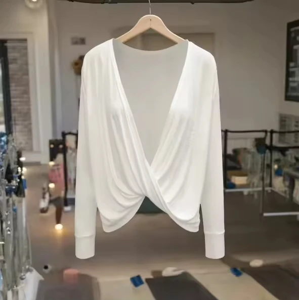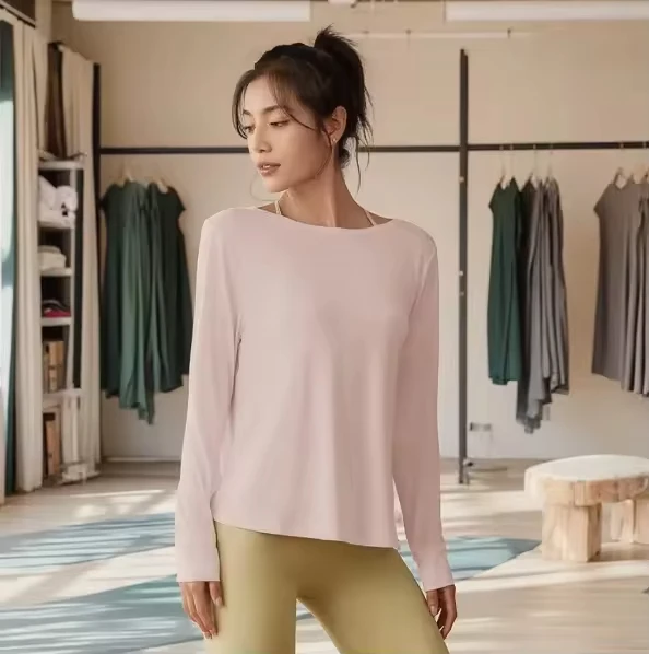 Ladies Fitness Yoga Long Sleeve Workout Top Sweat-Wicking Quick Dry Breathable Logo Front Sexy Back Design 180g Crew Neck
