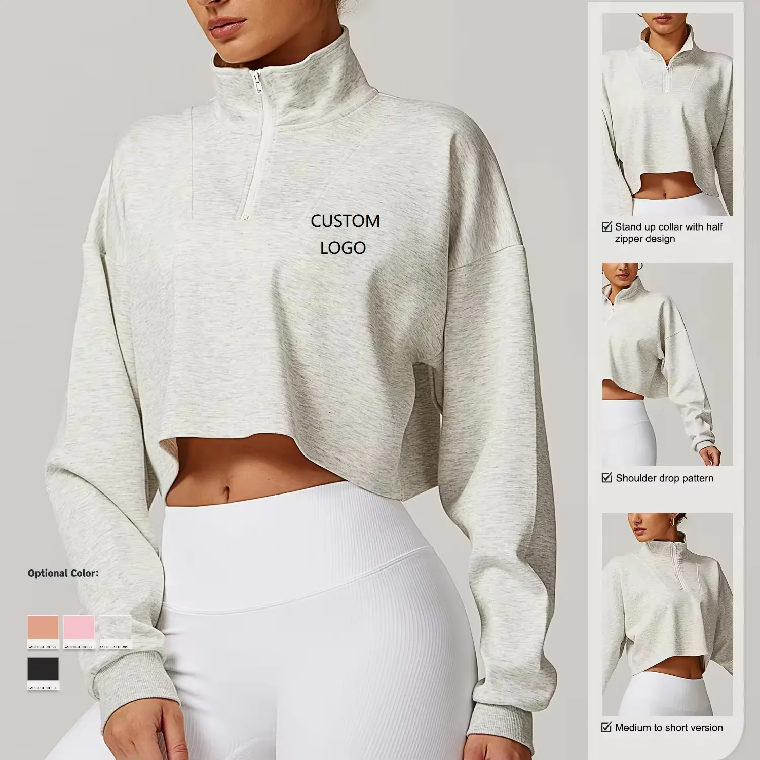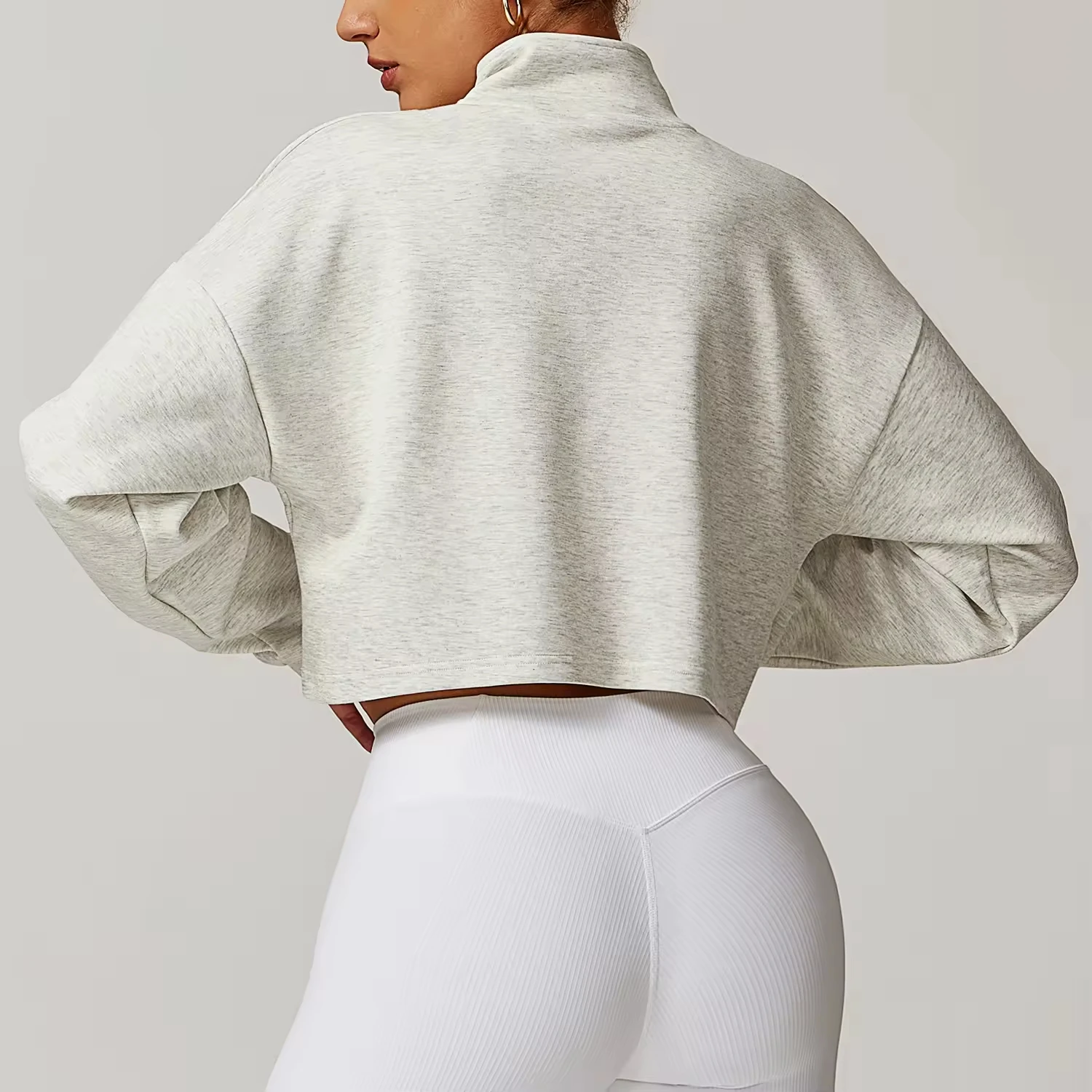 Casual Half Zip up Stand Collar Crop Long Sleeve Hem Cropped Loose Quick Dry Breathable Fitness Workout Pullover Jackets Top