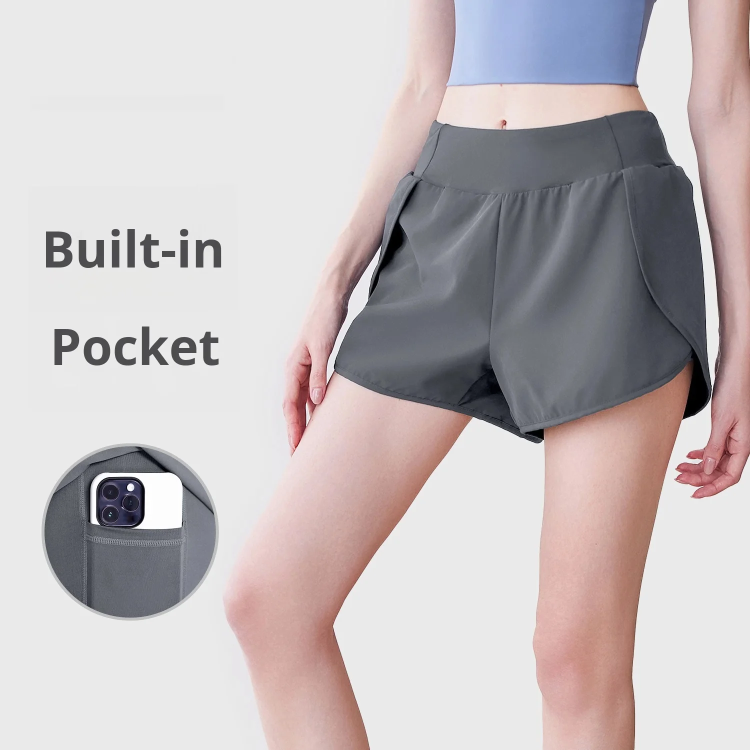 Women 2 in 1 Workout Running Shorts Lightweight Quick-Dry Gym Athletic Training Yoga Shorts With Side Pocket