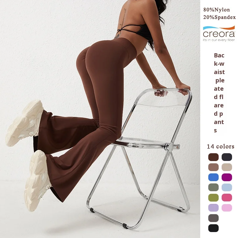 YISHENHON Recyclable Fabric Quick Dry Yoga V Waist Gym Leggings Running Workout Wide Leg Pants Flare Woman Sport Pants