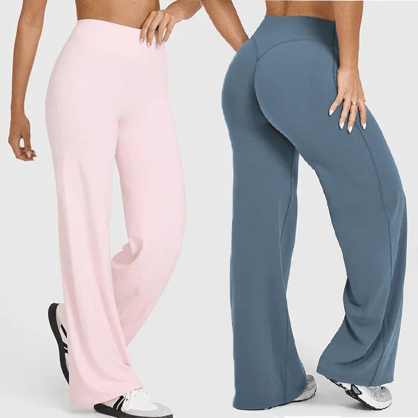 YISHENHON Recyclable Fabric Quick Dry Yoga V Waist Gym Leggings Running Workout Wide Leg Pants Flare Woman Sport Pants