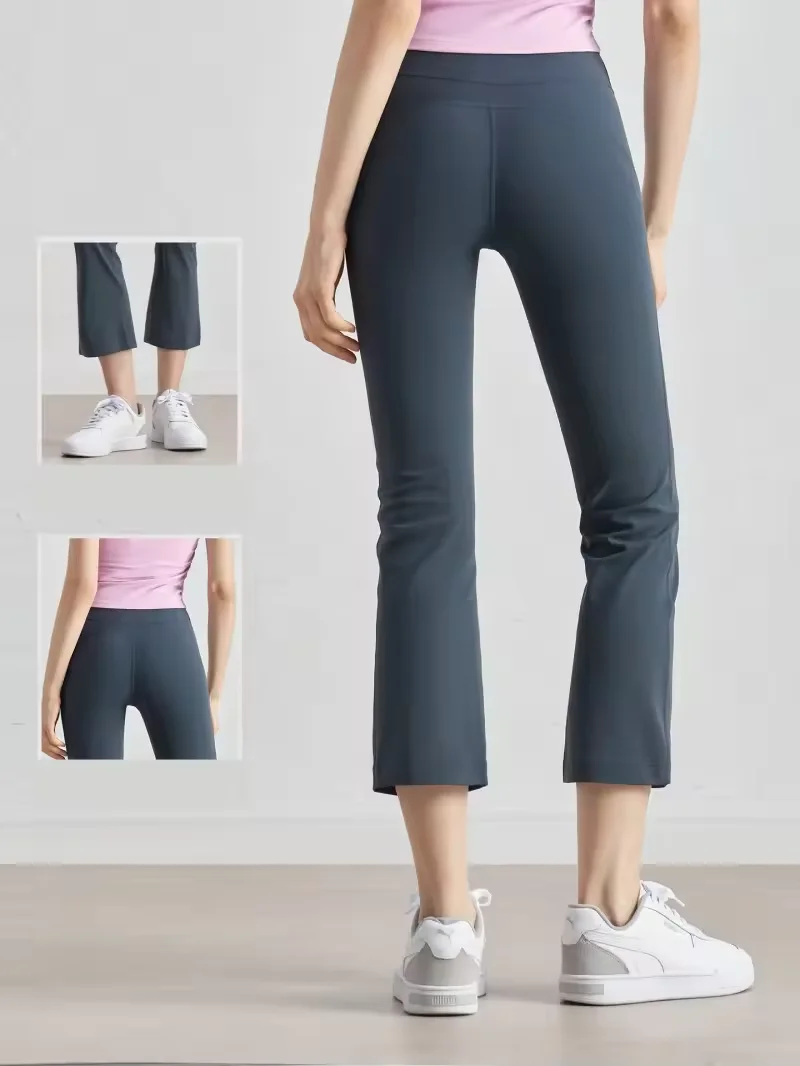 Women's High Waist Sports Cropped Pants Mid-Length Fitness Tight with Elastic Waist Hip Lifting Small Trumpet Print Custom Logo