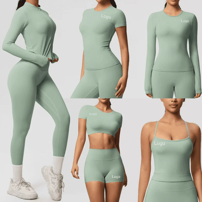 Hot Sale 8-Pieces Sets Custom Newest Women Sports Gym Training Clothes Jacket Bra Quick Dry Elastic Athletic Yoga Wear Sets