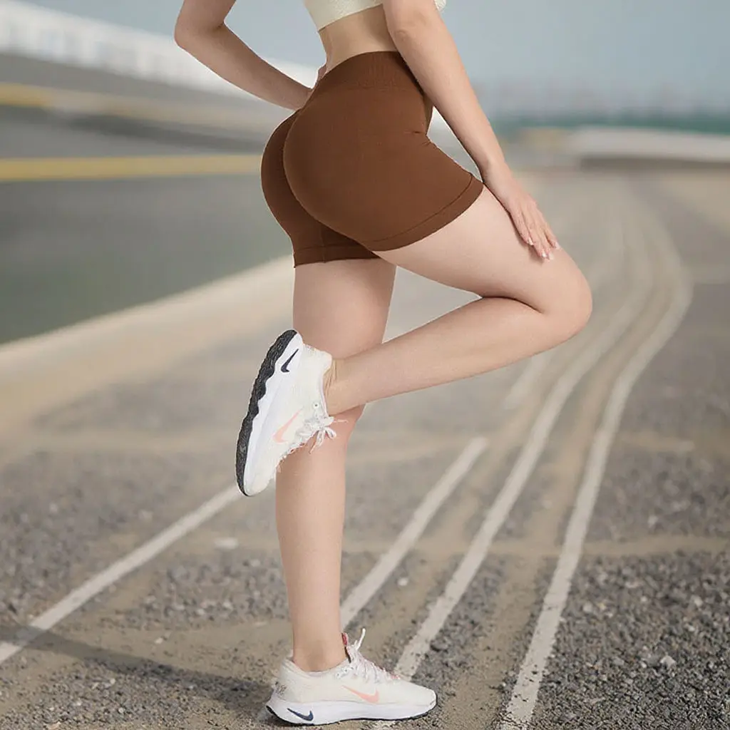 Hot Selling Solid Gym Sport Seamless Mid Waist Push Workout Running Fitness Shorts Exercise Butt Scrunch Women