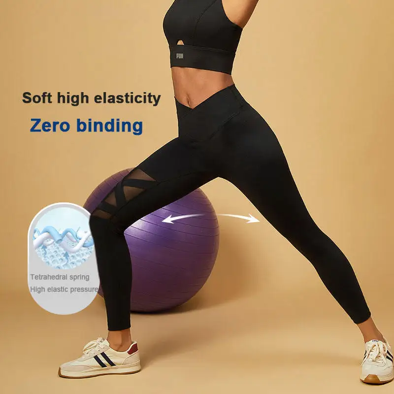 High Waisted Sexy Mesh Sports Yoga Pants With Hip Lifting and Slimming Functions Newly Produced High Waist Workout Fitness