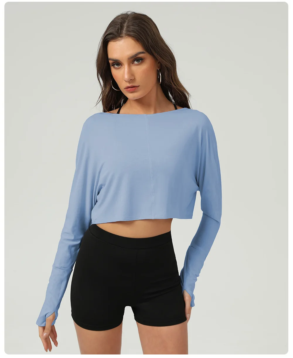 Women's Breathable Quick Dry Long Sleeve Crew Neck Crop Top Yoga Activewear for Gym Outdoor