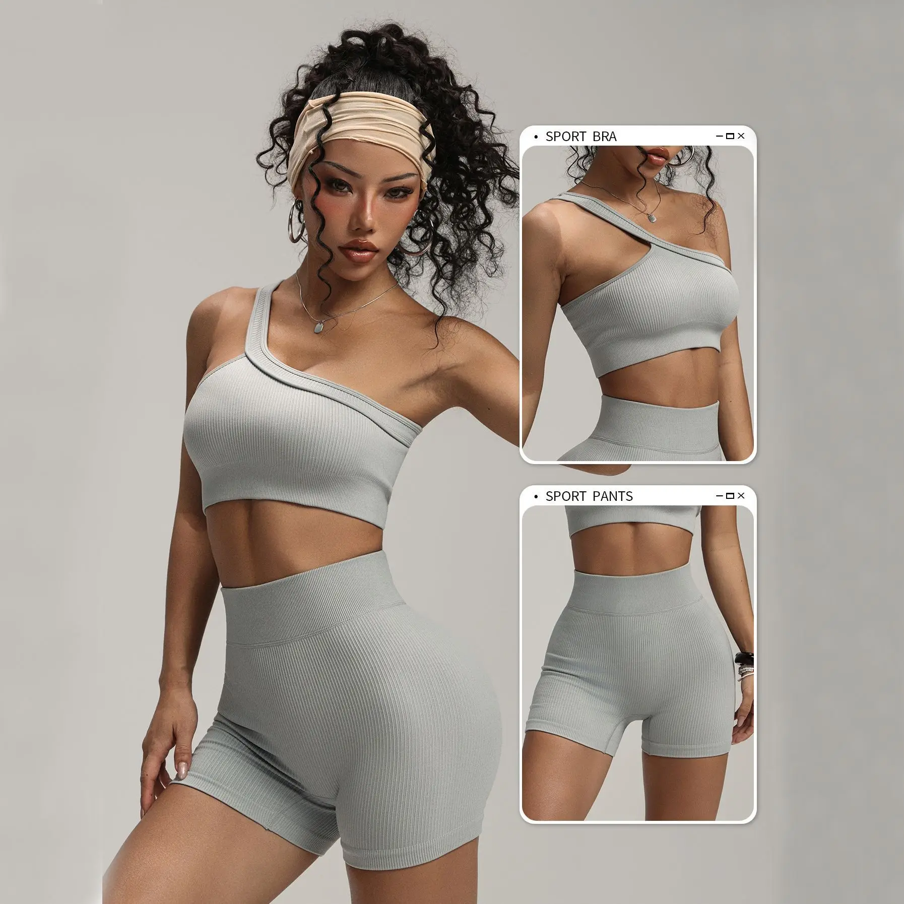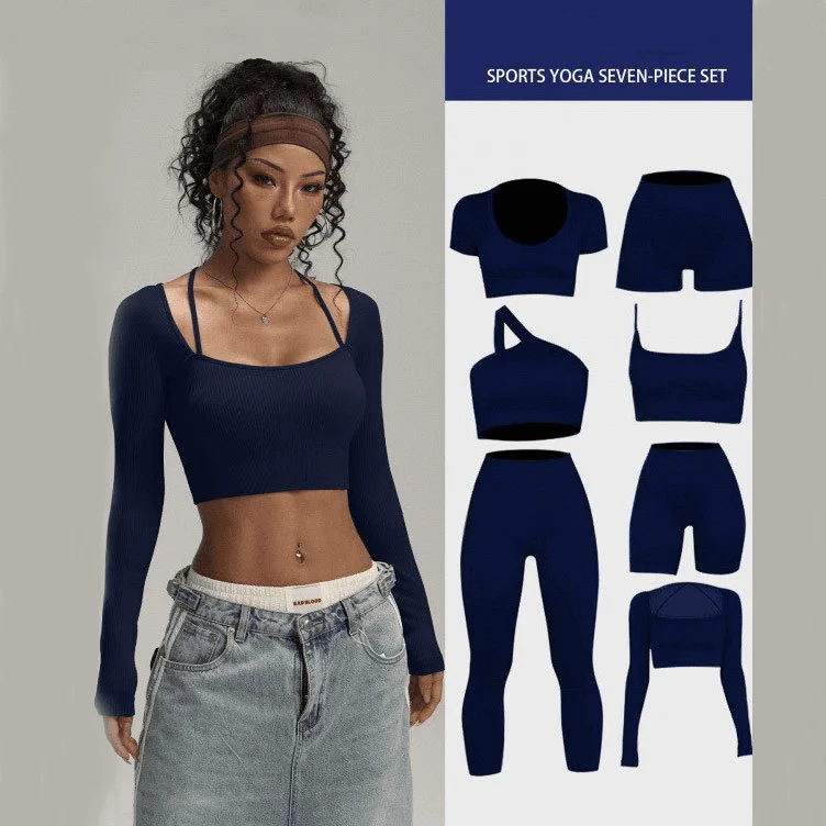 Customization Women'st Workout Threaded Long-Sleeve Running Sports Bra with Shorts and Pants Yoga Wear 7-Piece Set ActiveWear