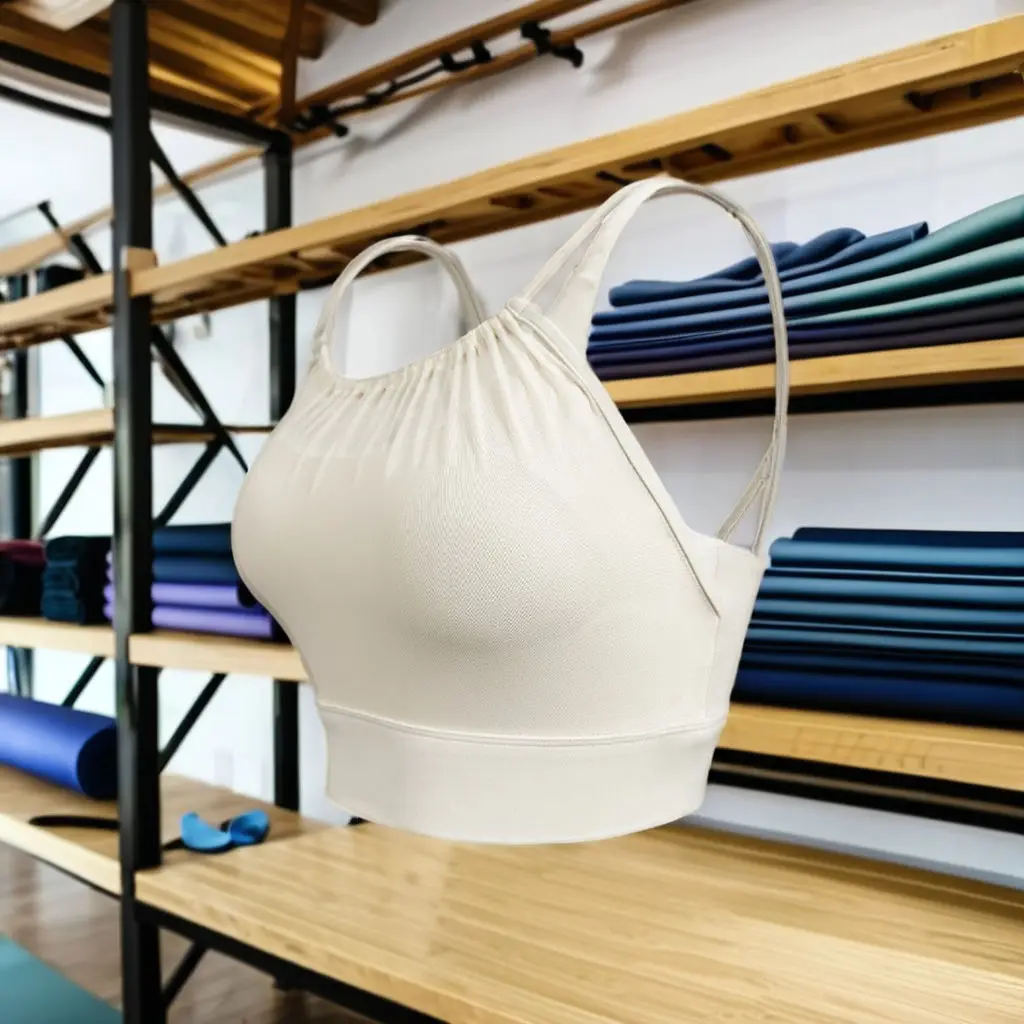Custom Logo Women's Solid Breathable High Support Fitness Bra Summer Gym Two-Piece Yoga Vest Thin Sling Strap