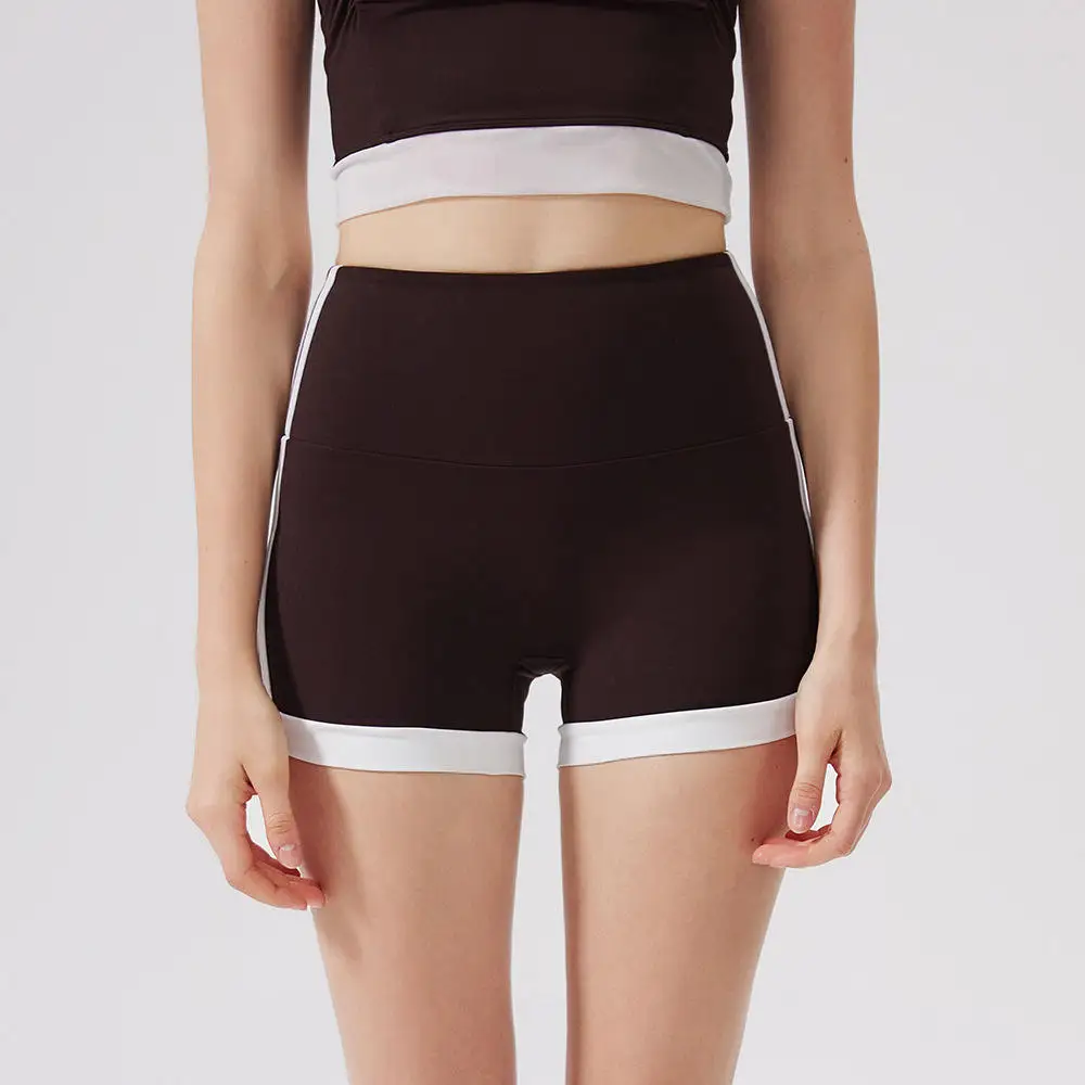 Wholesale Women's Summer High-Waisted Quick-Drying Yoga Shorts Color-Block Stretchy Gym Running Shorts with Elastic Waist