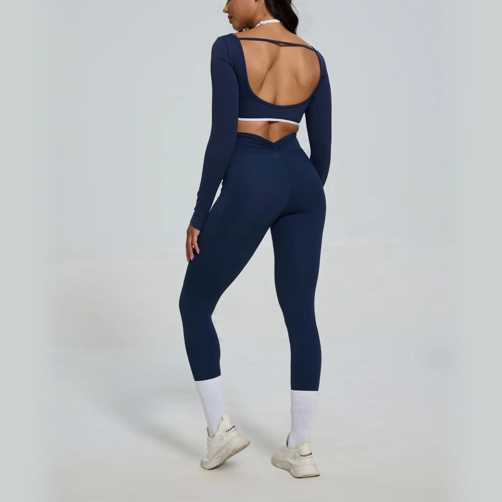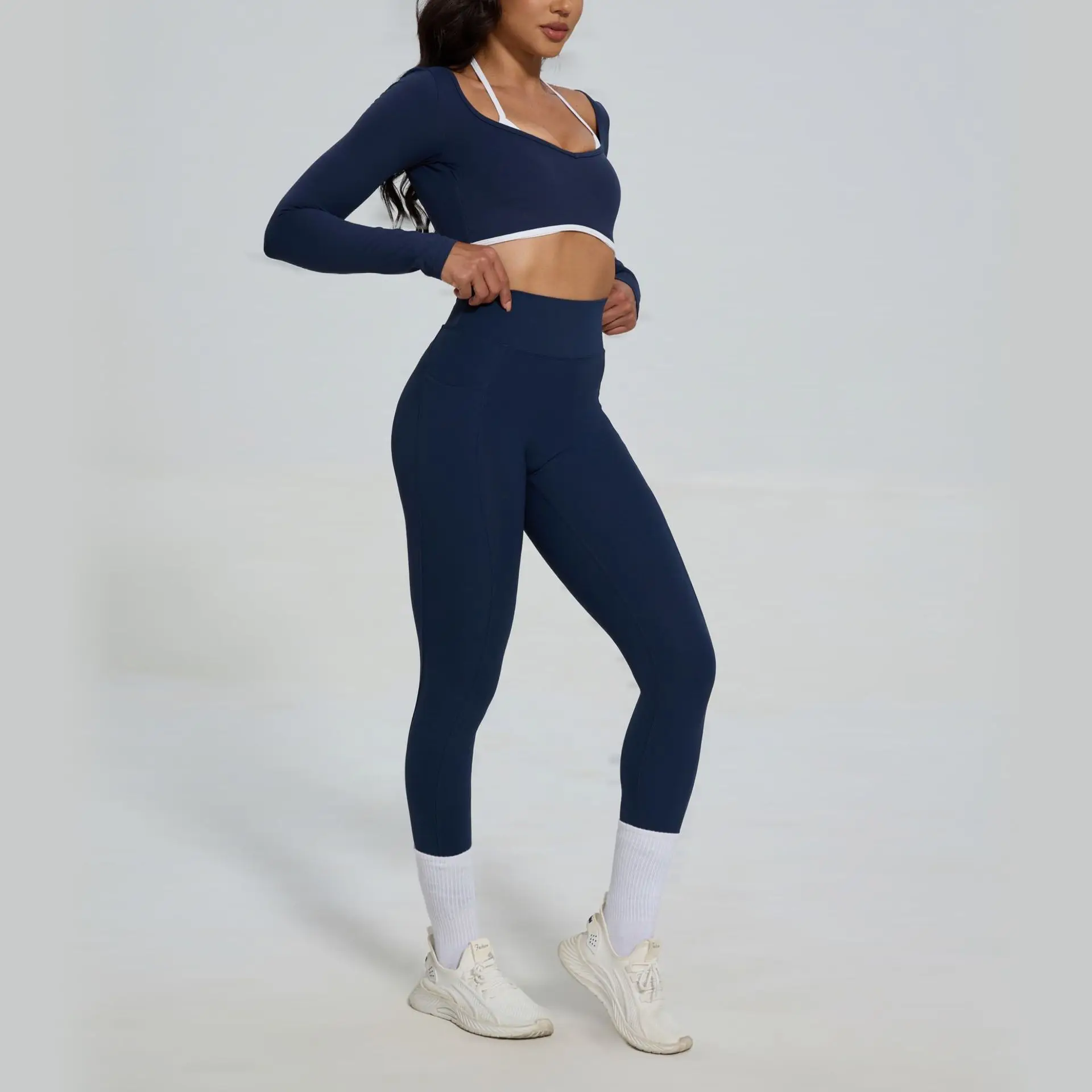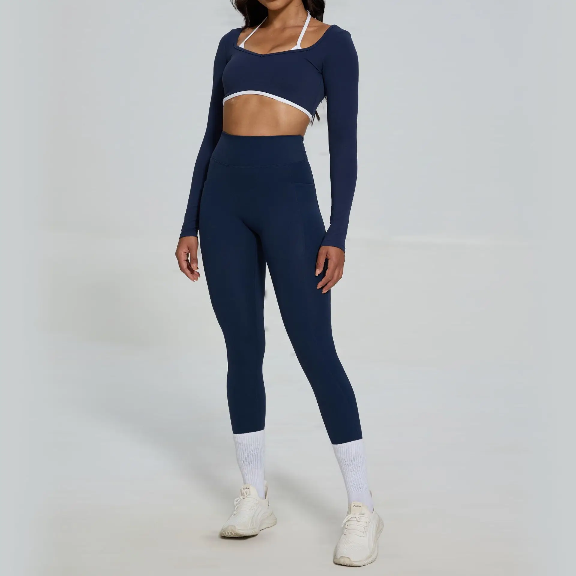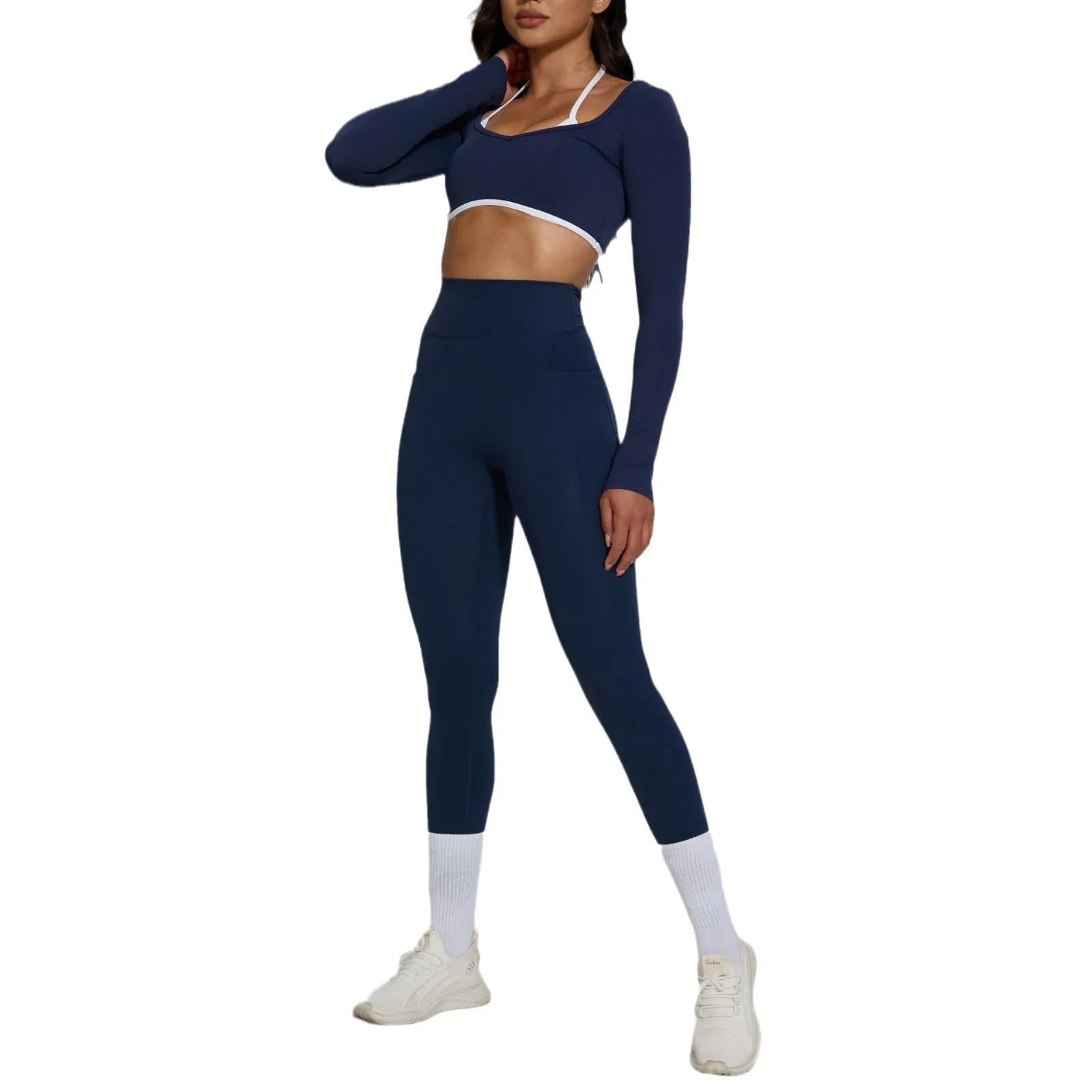 Long Sleeve Yoga Set Women Sports Wear Set Scrunch Butt Leggings Set Women Workout 2 Pieces Gym Suit