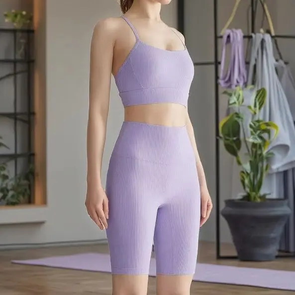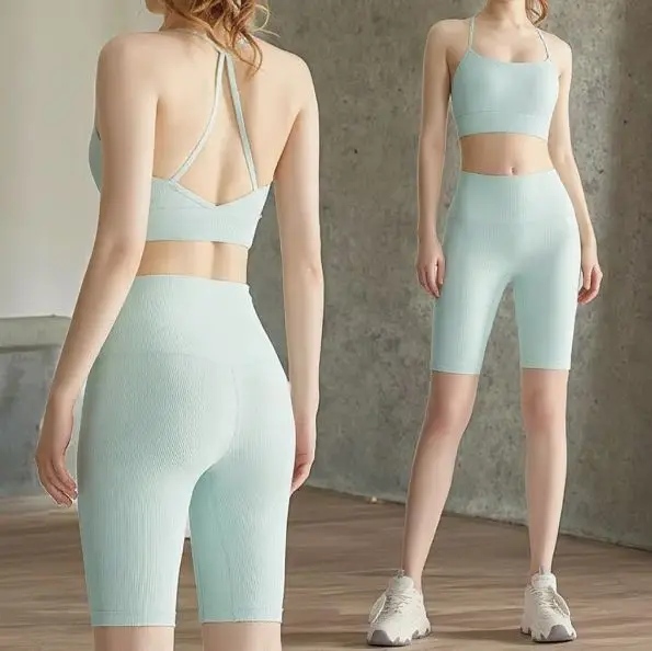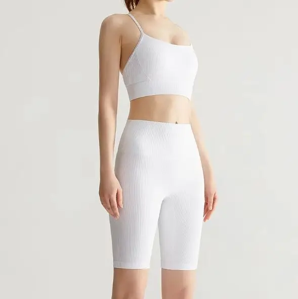 Customized Ribbed Women Sports Bras Sleeveless Front No Seam Gym Shorts Fitness Yoga Wear Set Women Sports Bra Gym Fitness