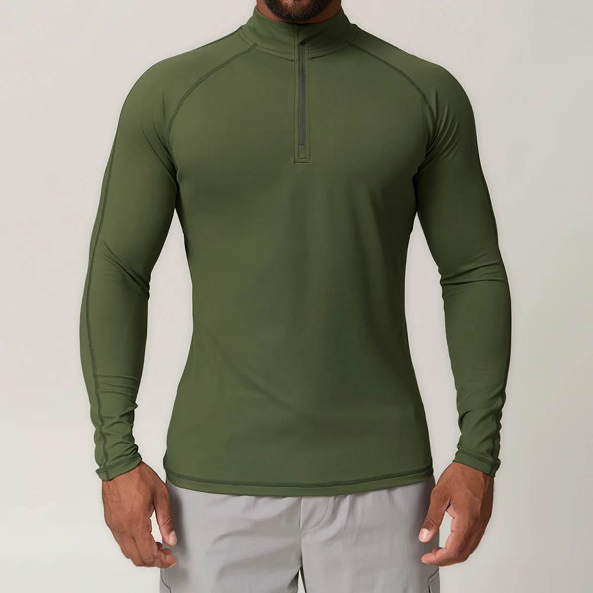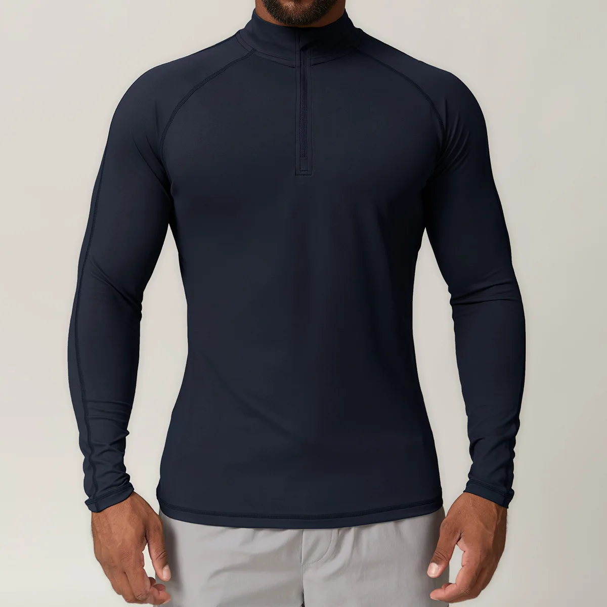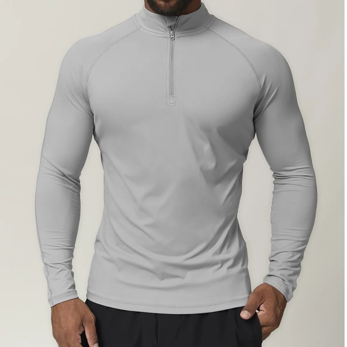 Wholesale High-quality Men's Sports Shirts Outdoor Quick-dry Compression Gym Half-zip Collar Sportswear with Muscle Design