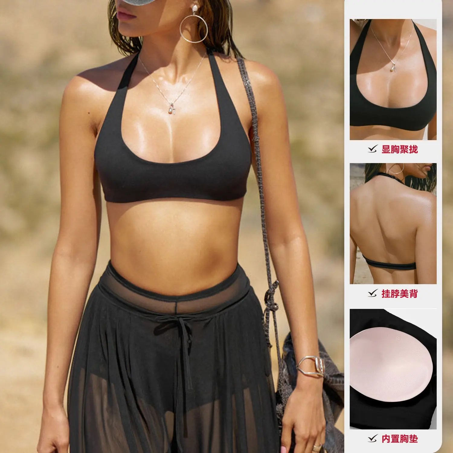 Cross-border Breathable Bare-feel Yoga Fitness Pilates Neck-hanging Women Outerwear Quick-drying Back-shaping High Sports Bra