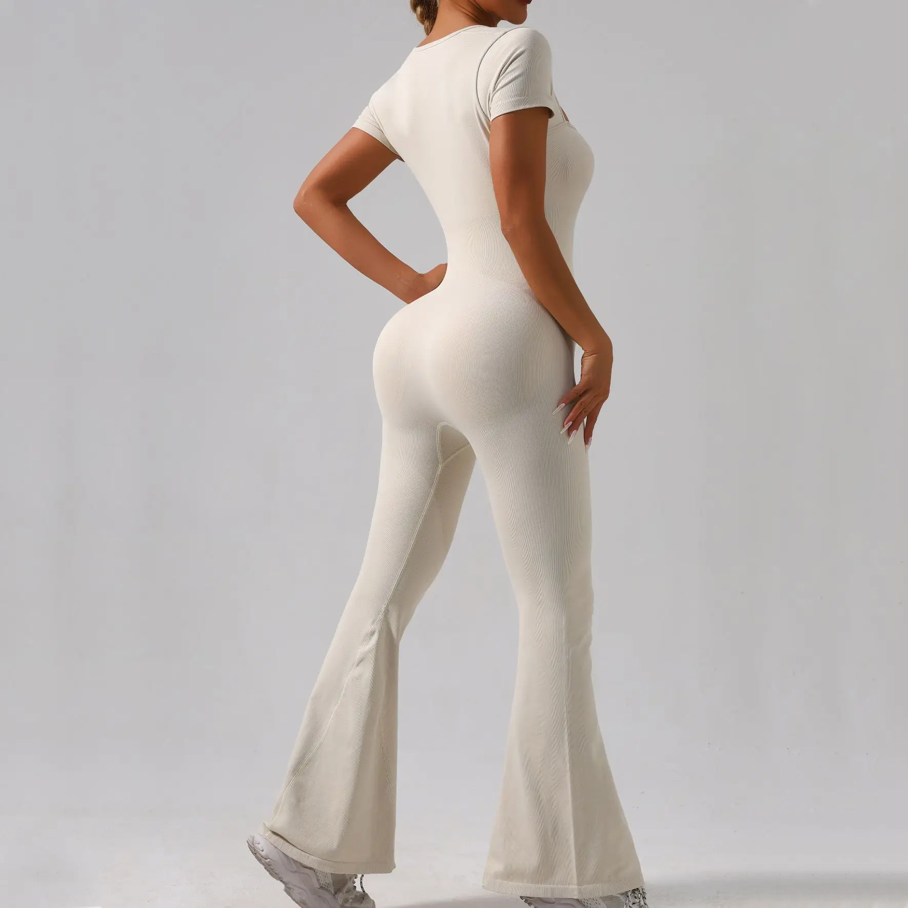 YISHENHON Recyclable Fabric Quick Dry Yoga V Waist Gym Leggings Running Workout Wide Leg Pants Flare Woman Sport Pants