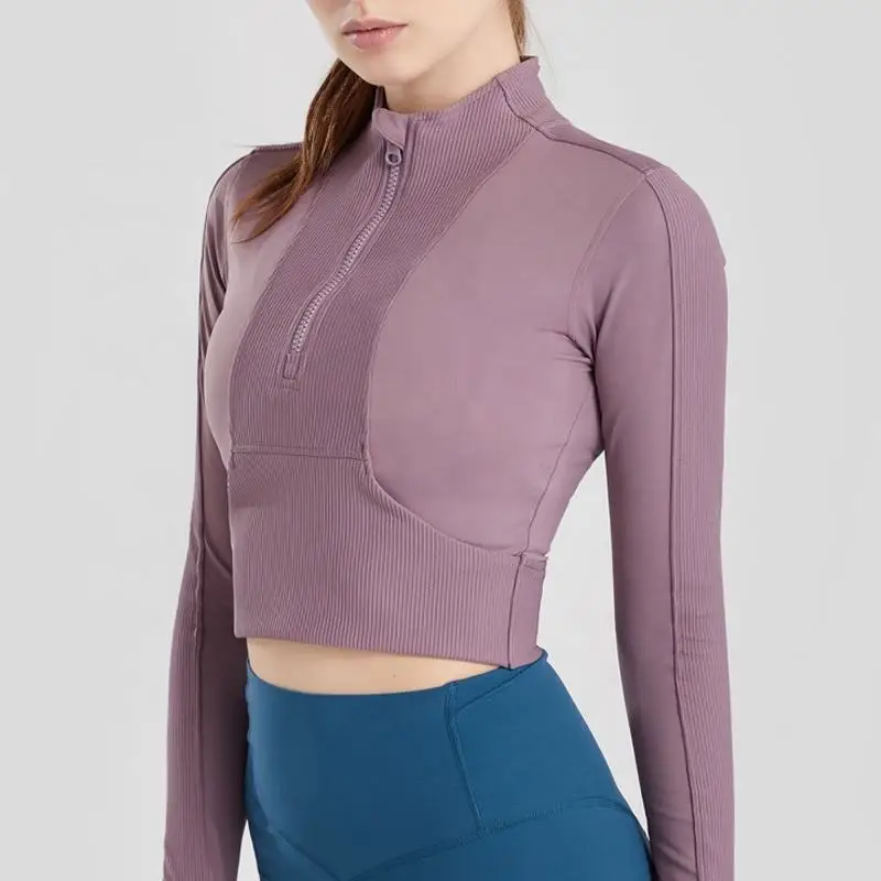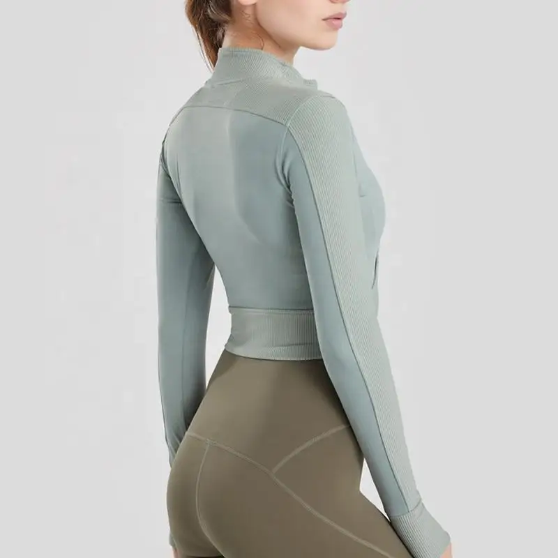 YISHENHON New Arrivals Quick-drying Women's Tight Running Sports Fitness Yoga Jacket Activewear Zip Long Sleeve Workout Crop Top