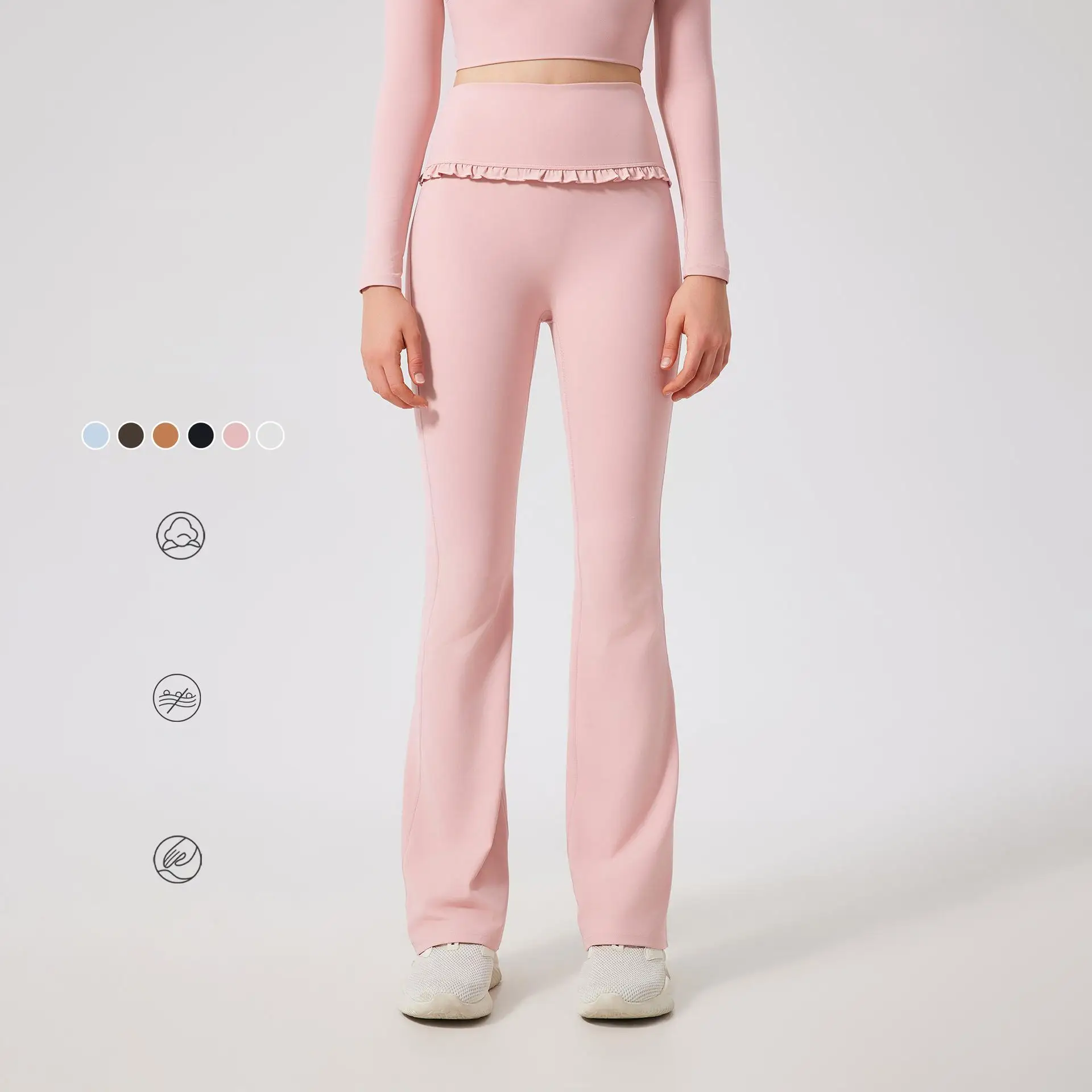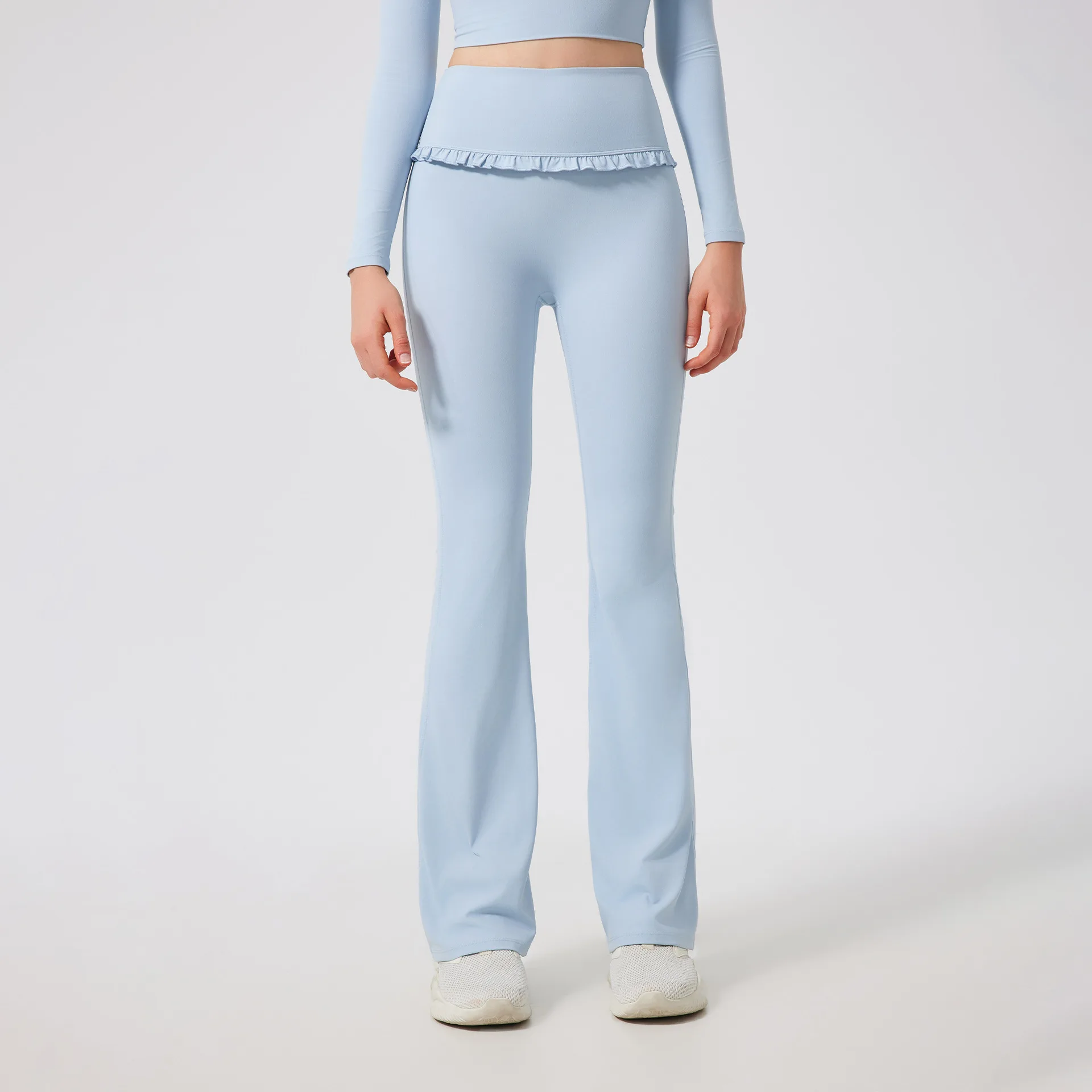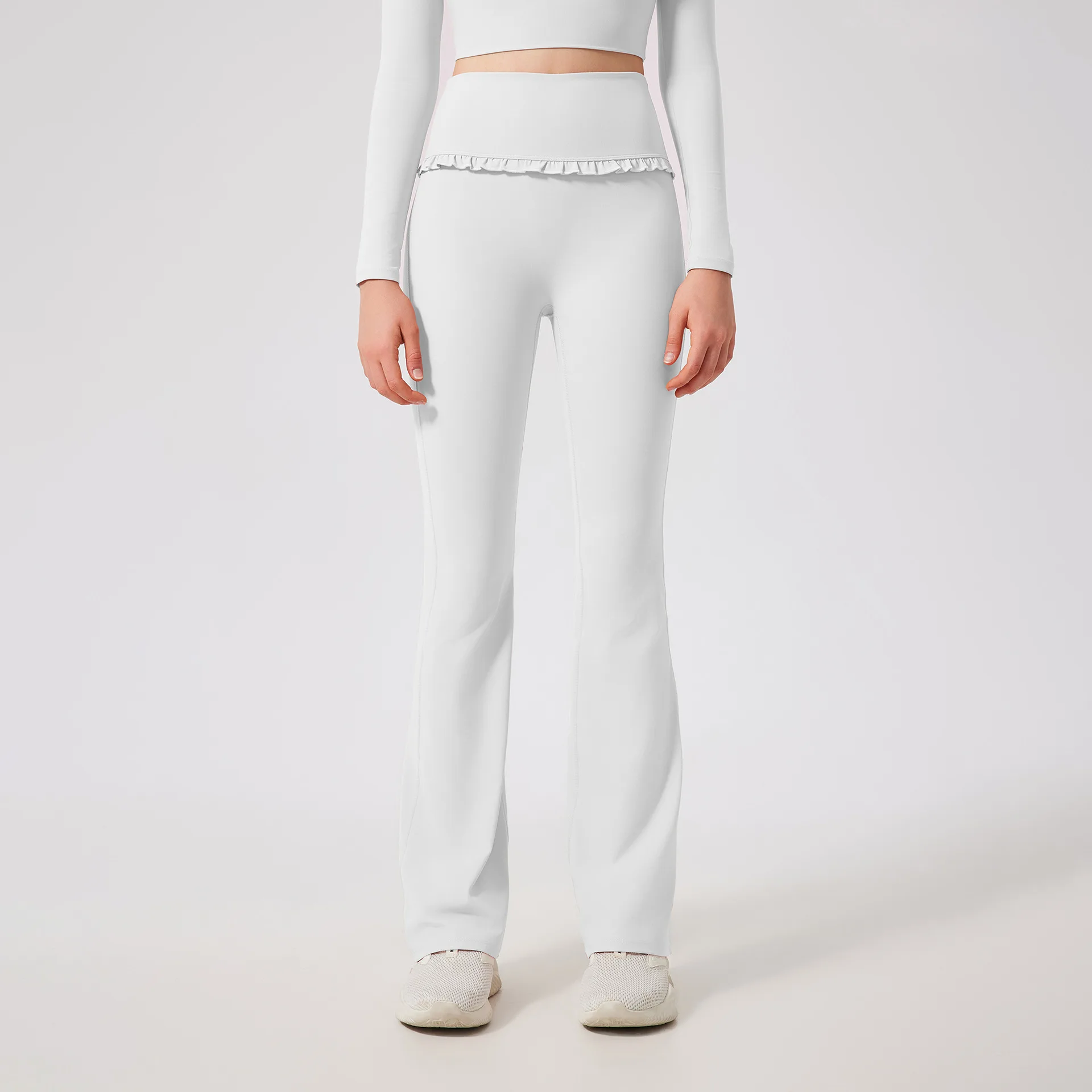 High Waist Straight Pants with Lace Ruffled Breathable Slightly Flared Yoga Pants Stretch Fit Quick Dry Gym Yoga Leggings Women