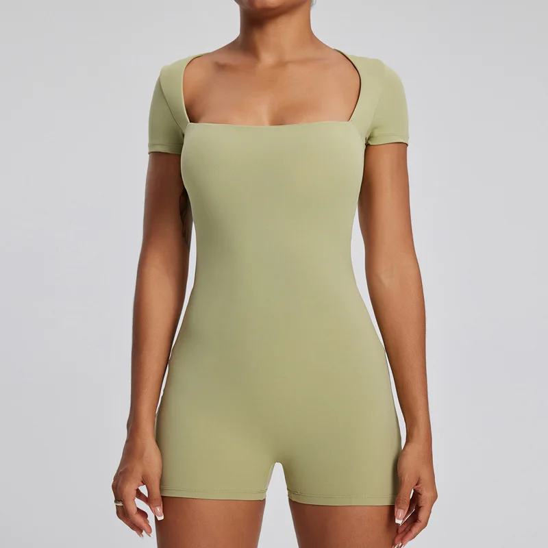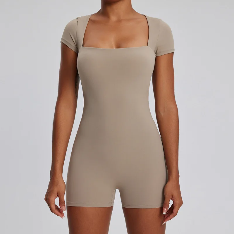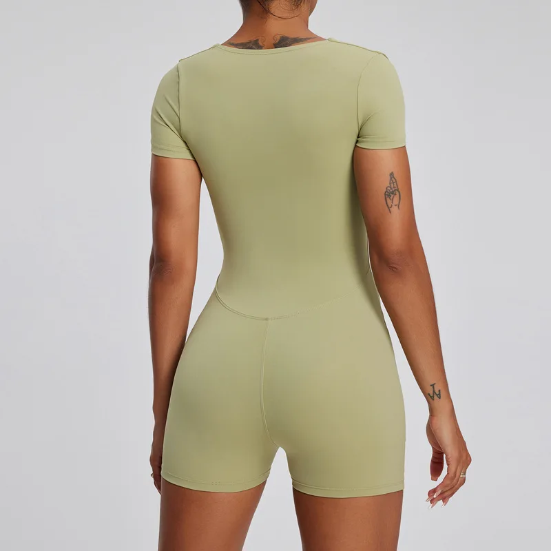 Nude Feeling Tight Fitting Breathable Quick Dry Spandex Nylon Short Sleeved Yoga Shorts One Piece Suit for Women Daily Training