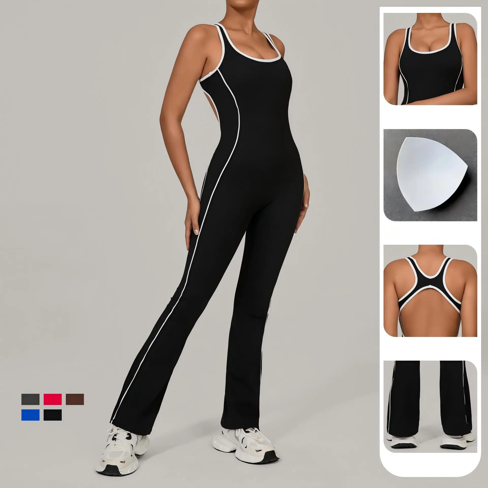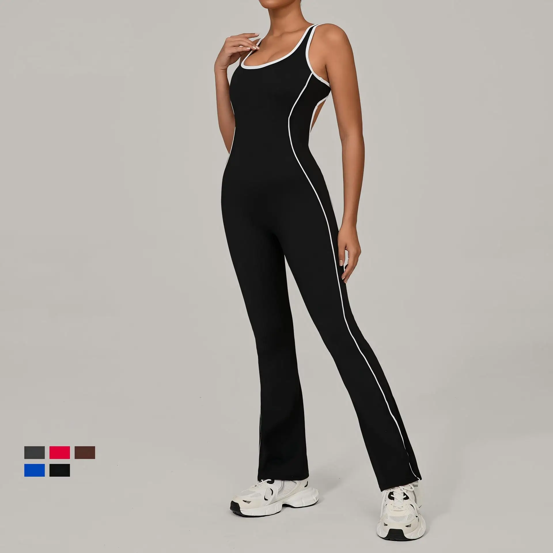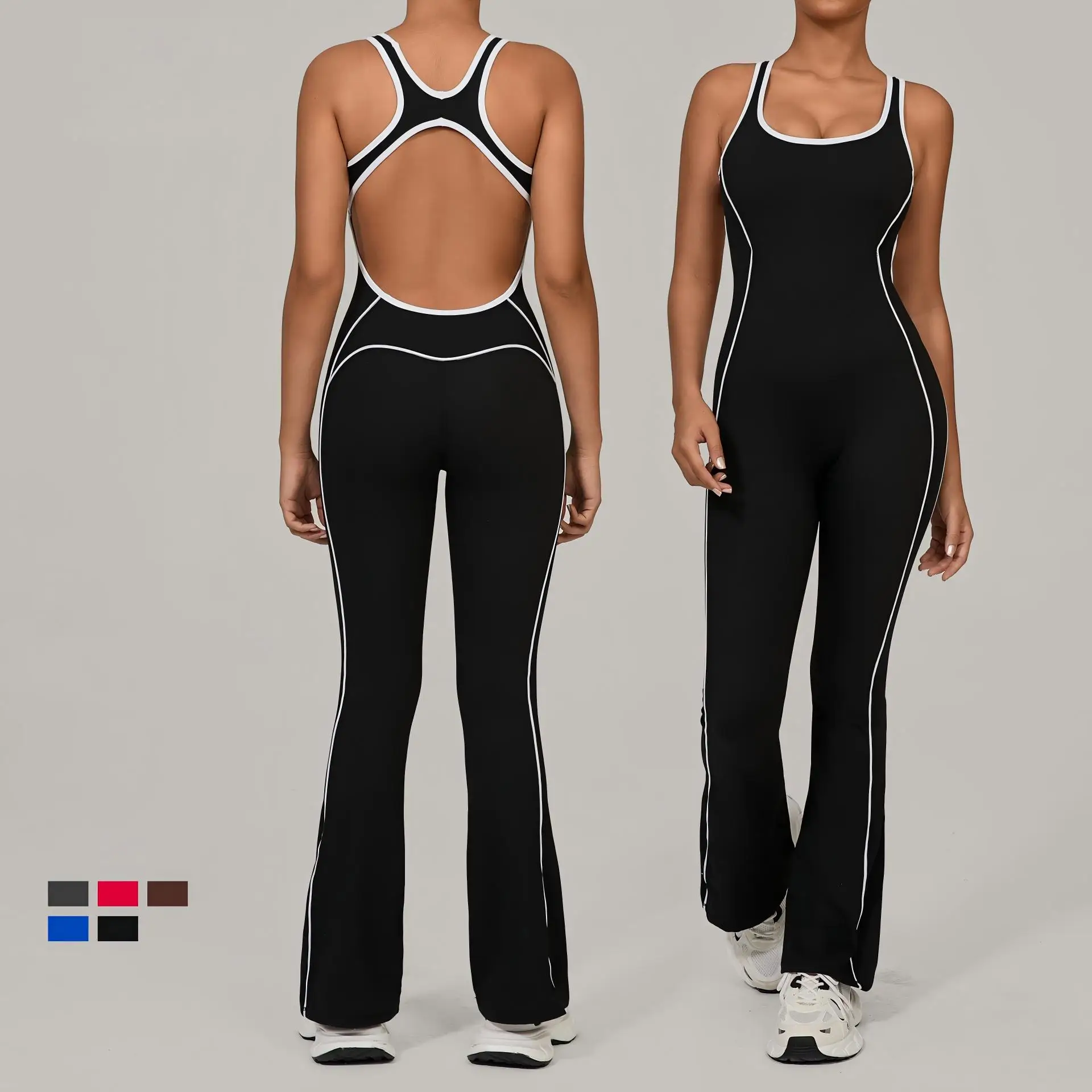 Hollowed-out Backless Tight Fit Breathable Quick Dry Hip-lifting Sleeveless Yoga Suit Jumpsuit for Women Daily Training