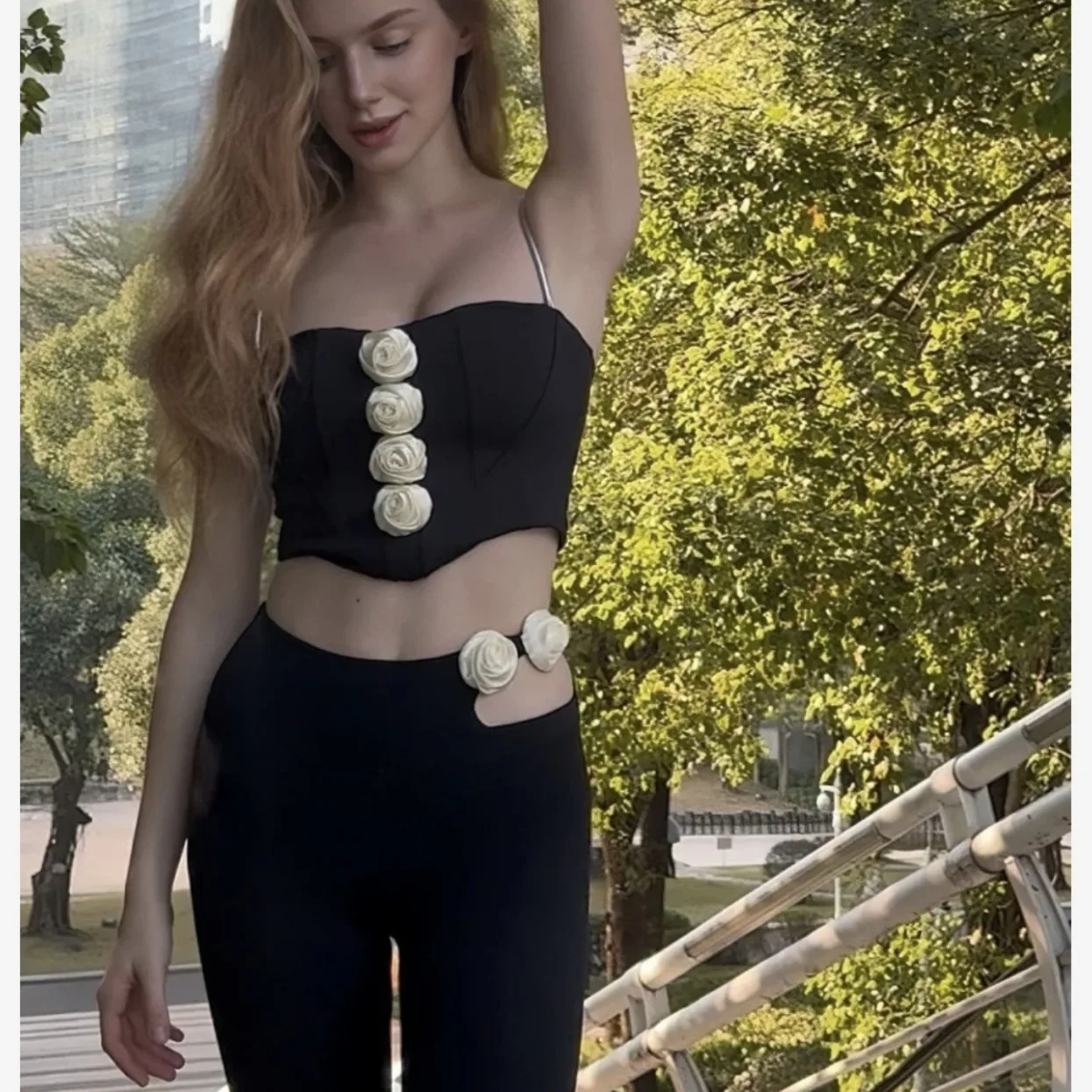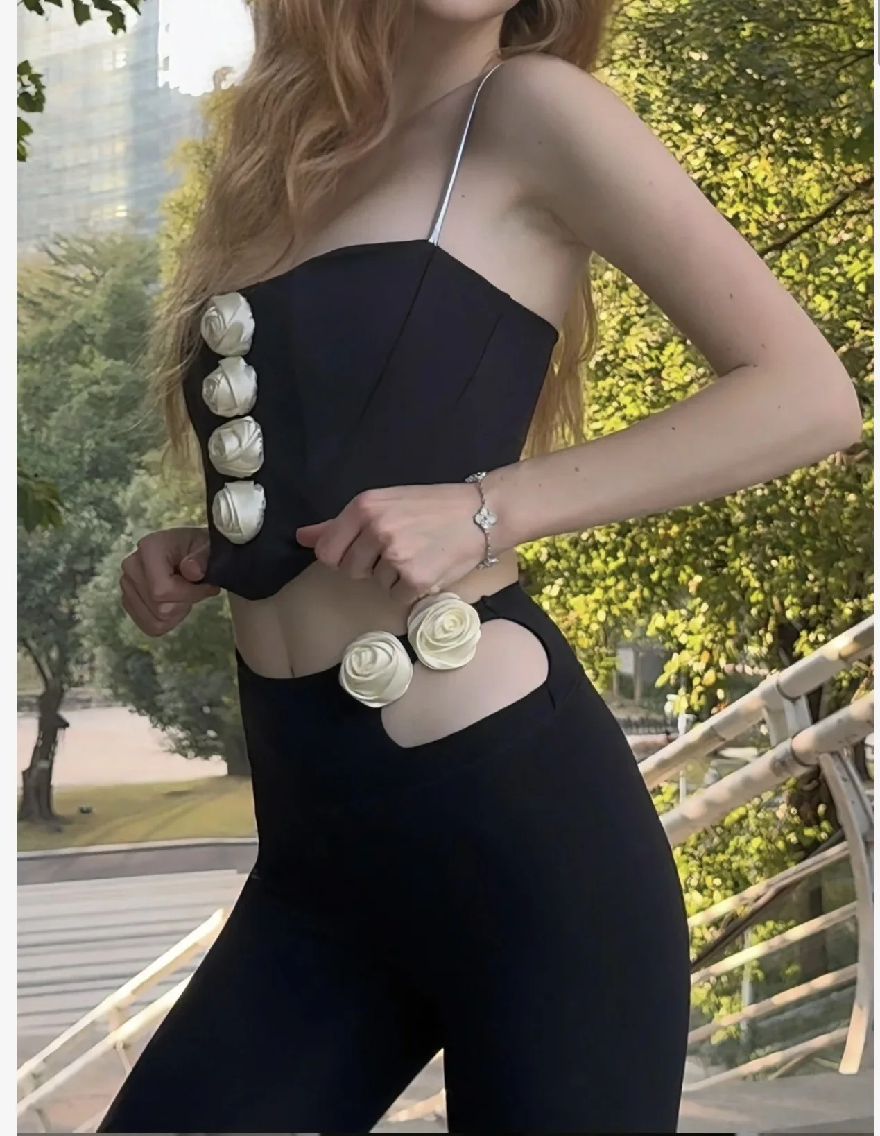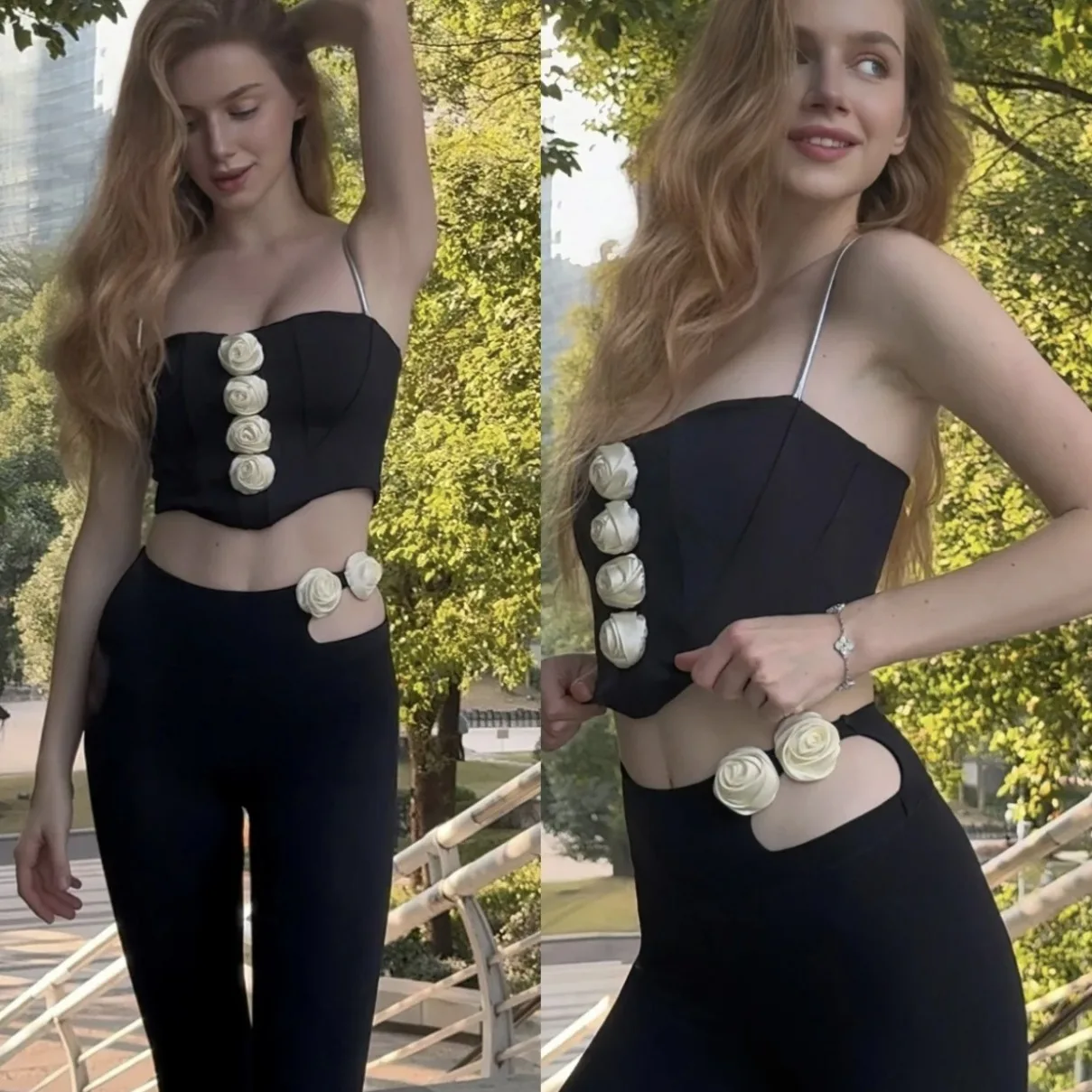 New Design Women's Fashion Yoga Set with 3D Rose Design Padded Sports Tank Top High-Waisted Cutout Fitness Pants