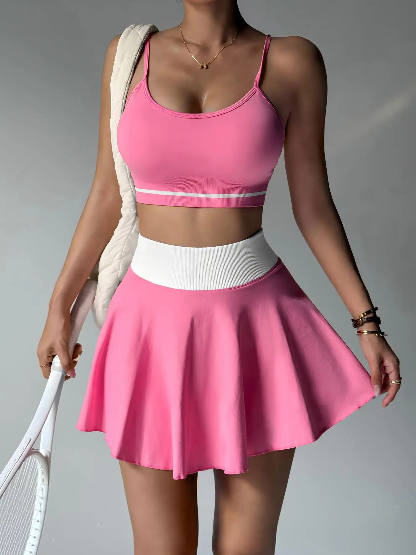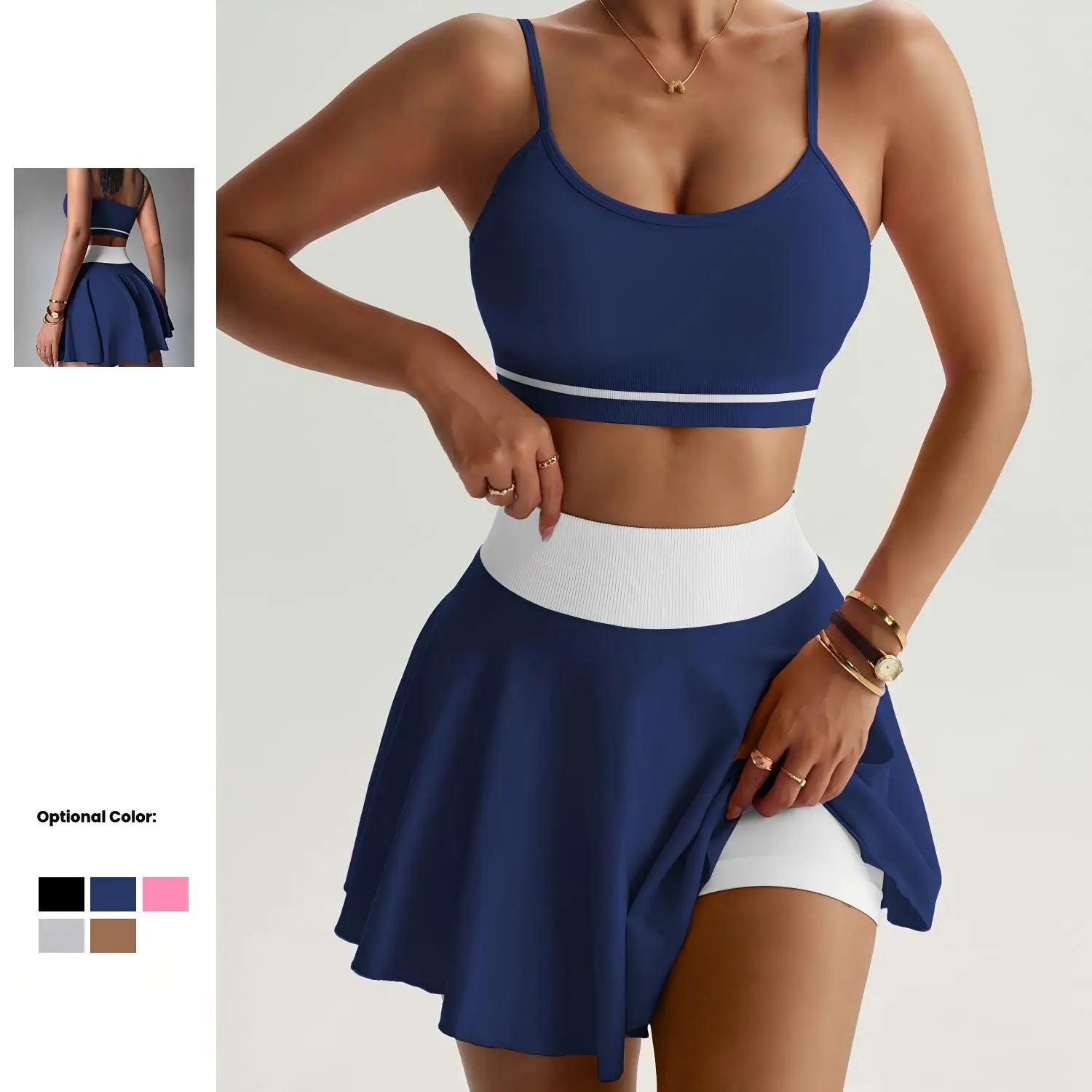 Women's Quick Dry Tennis Wear Set Halter Yoga Bra & High-waisted Tennis Skirt Set Sportswear Skirt Two-piece Gym Fitness Set