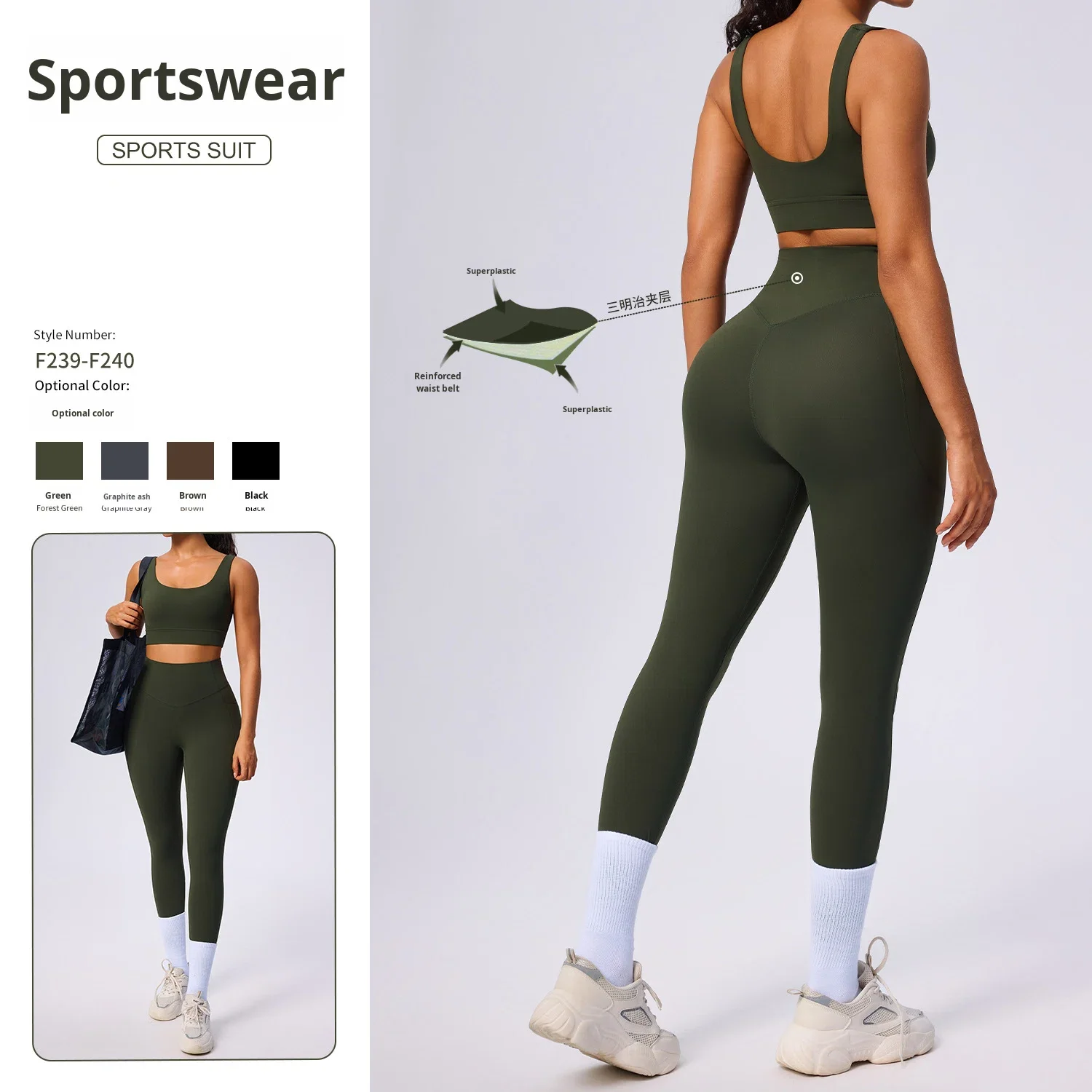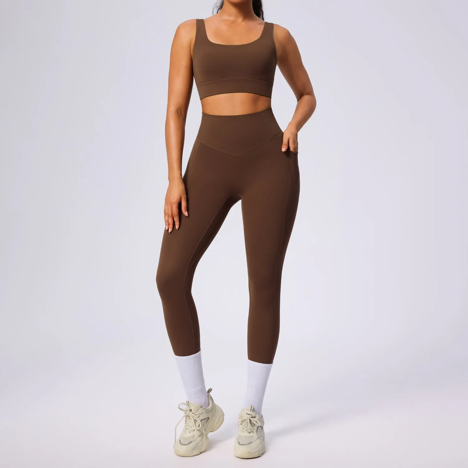 Custom Wholesale High Quality Nylon 2 Pcs Sports Bra Top Sets Butt Lifting Pants Fitness Leggings Gym Wear Yoga Sets for Women
