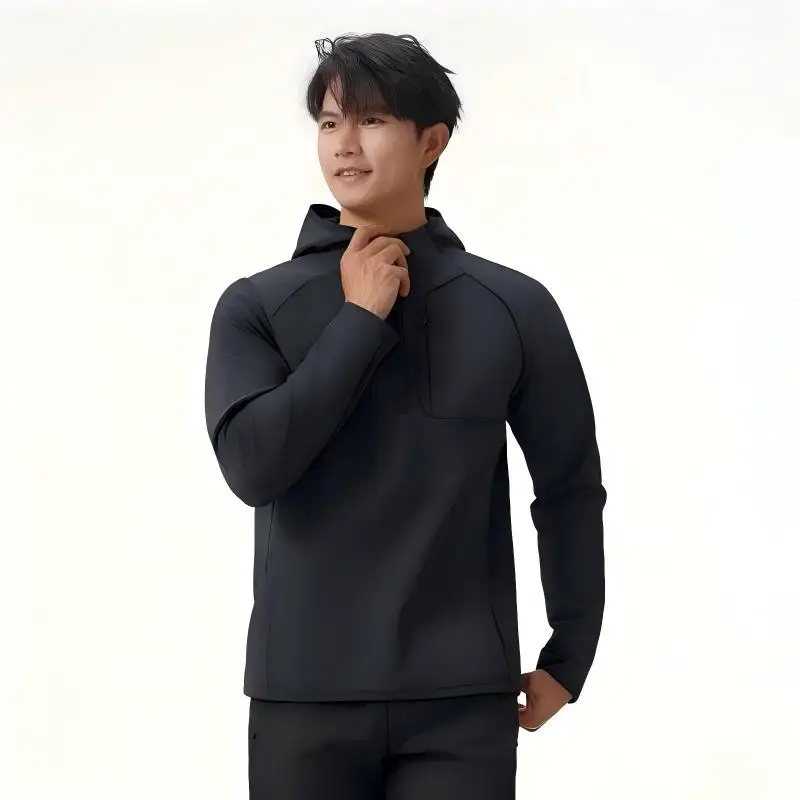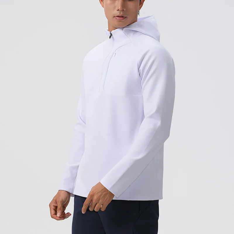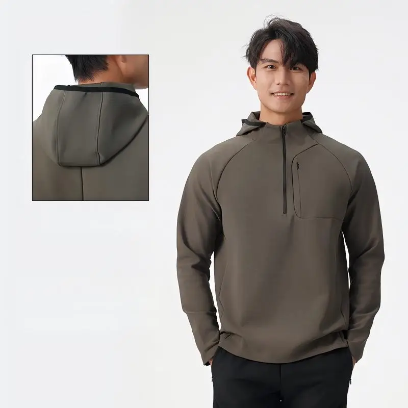 Casual Simple Style Men's Half-Zipper Blank Polyester Hoodie Spring Autumn Soft Anti-wrinkle Solid Color Regular Hooded Hoodies