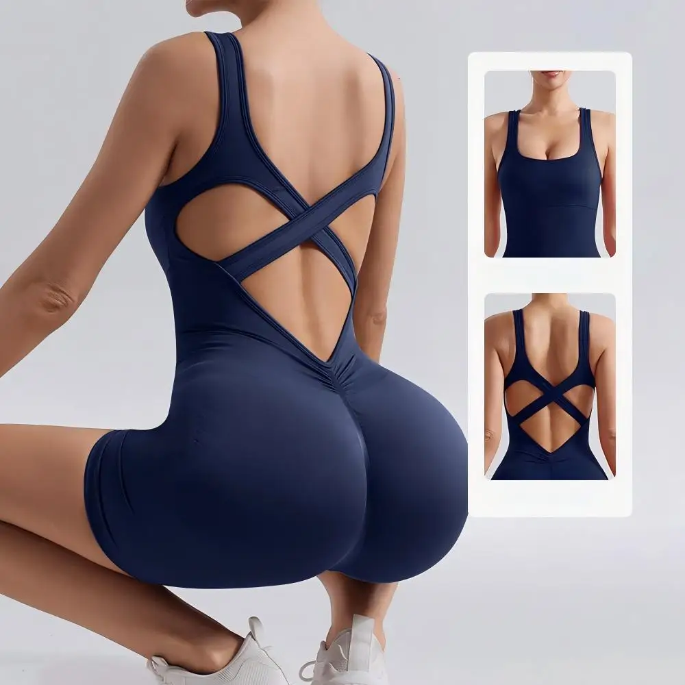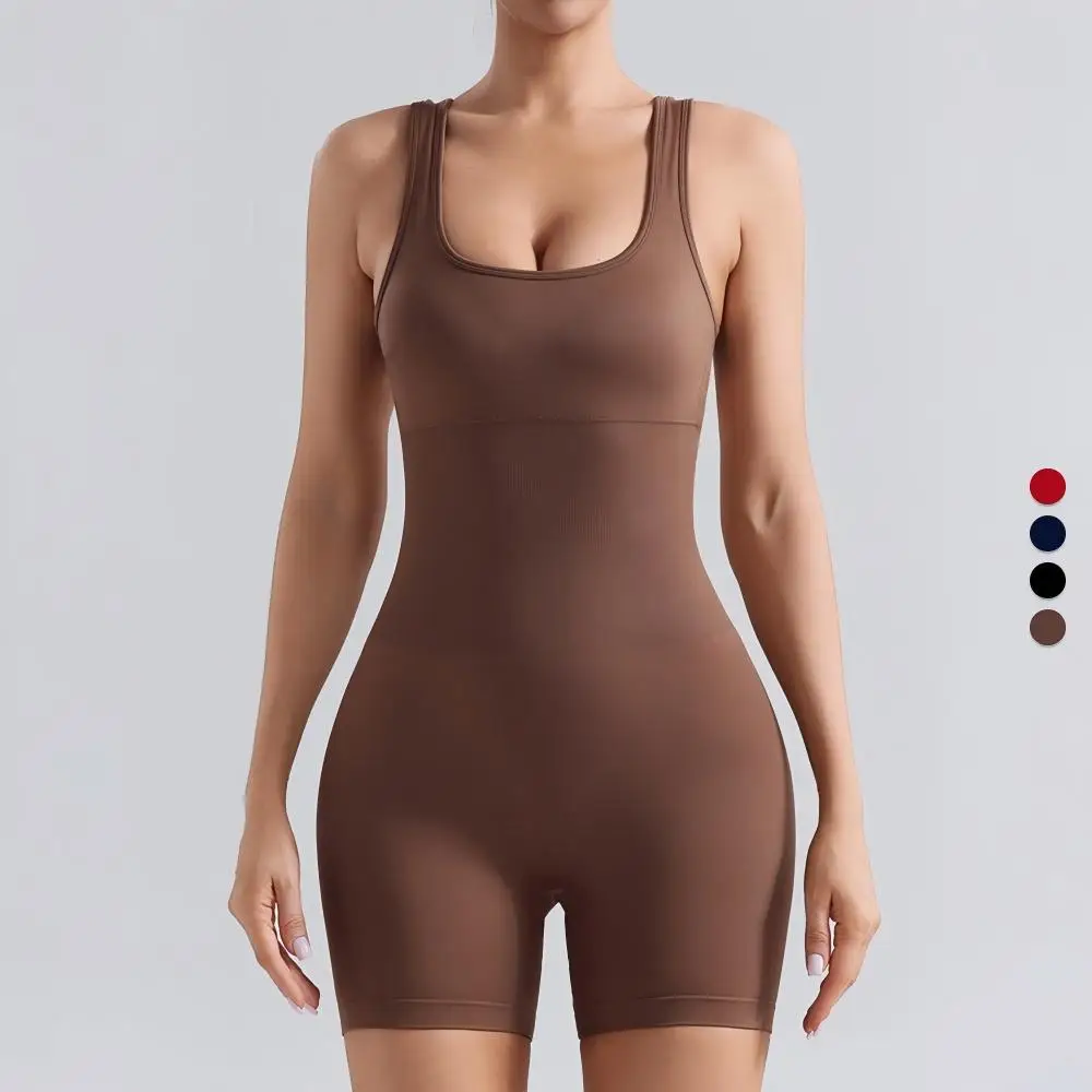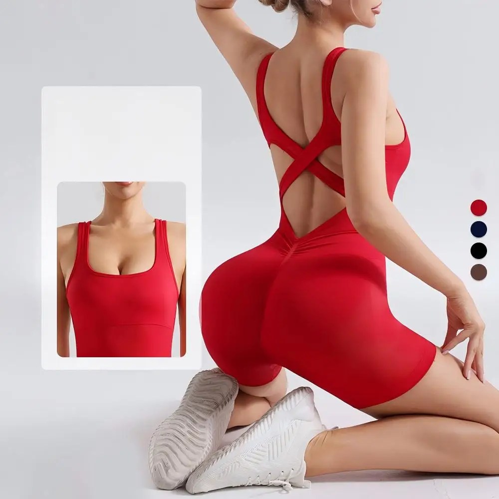 New Arrival Seamless Backless Tight Slim Fit Breathable Quick Dry Hip-lifting Sleeveless Yoga Jumpsuit for Women Daily Training