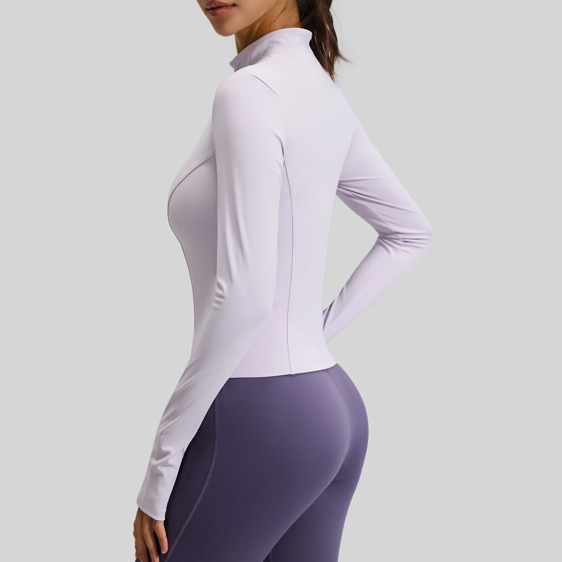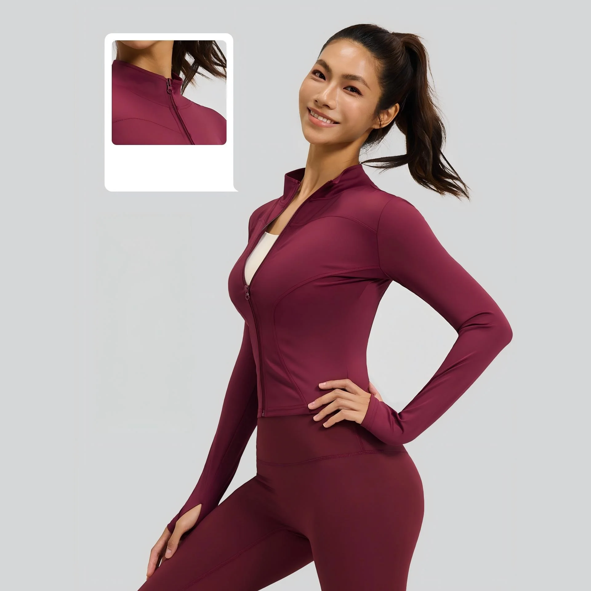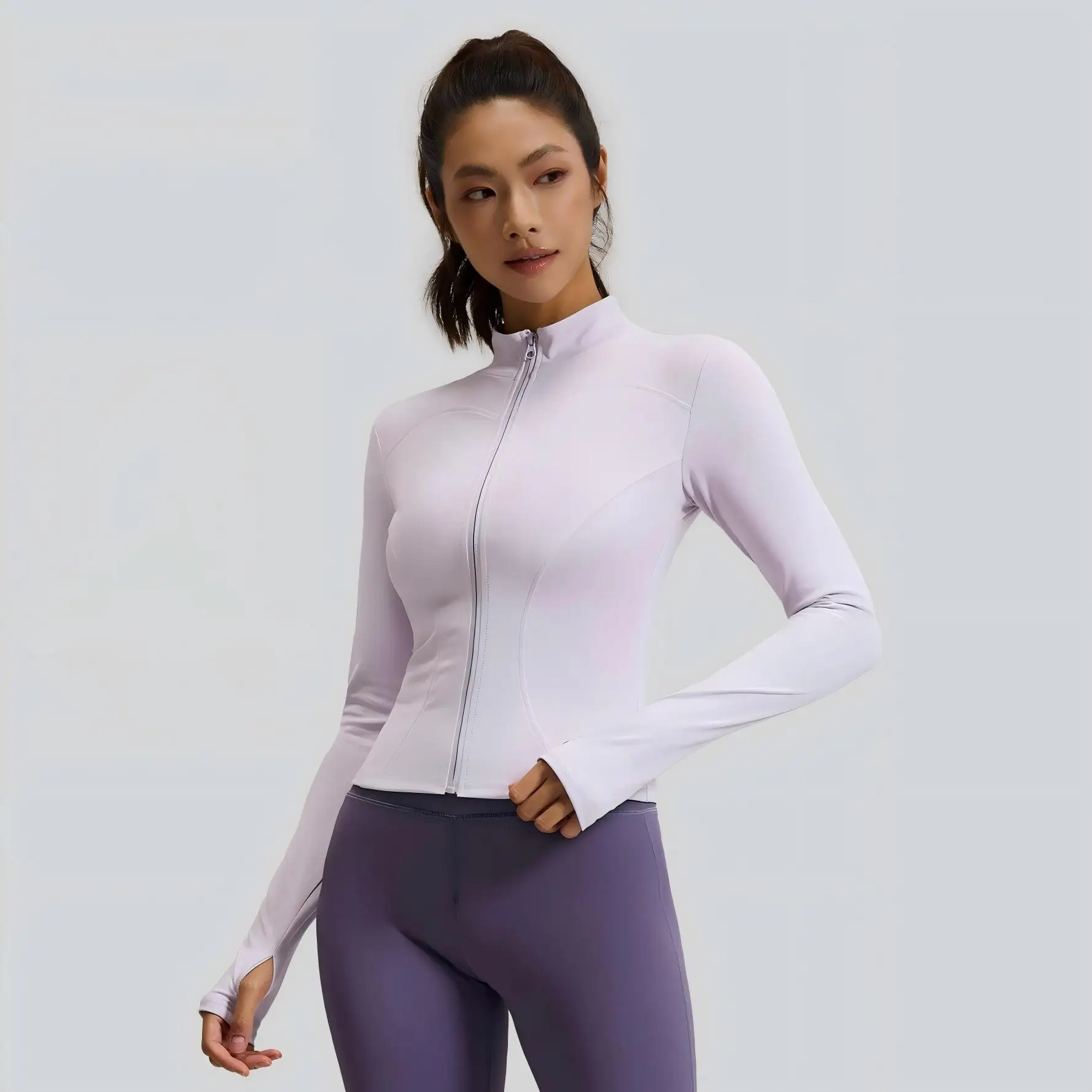 New Arrival Women's Solid-color Elastic Long Sleeve Stand Collar Yoga Jacket Breathable Zip up Slim Fit Sportswear for Workout