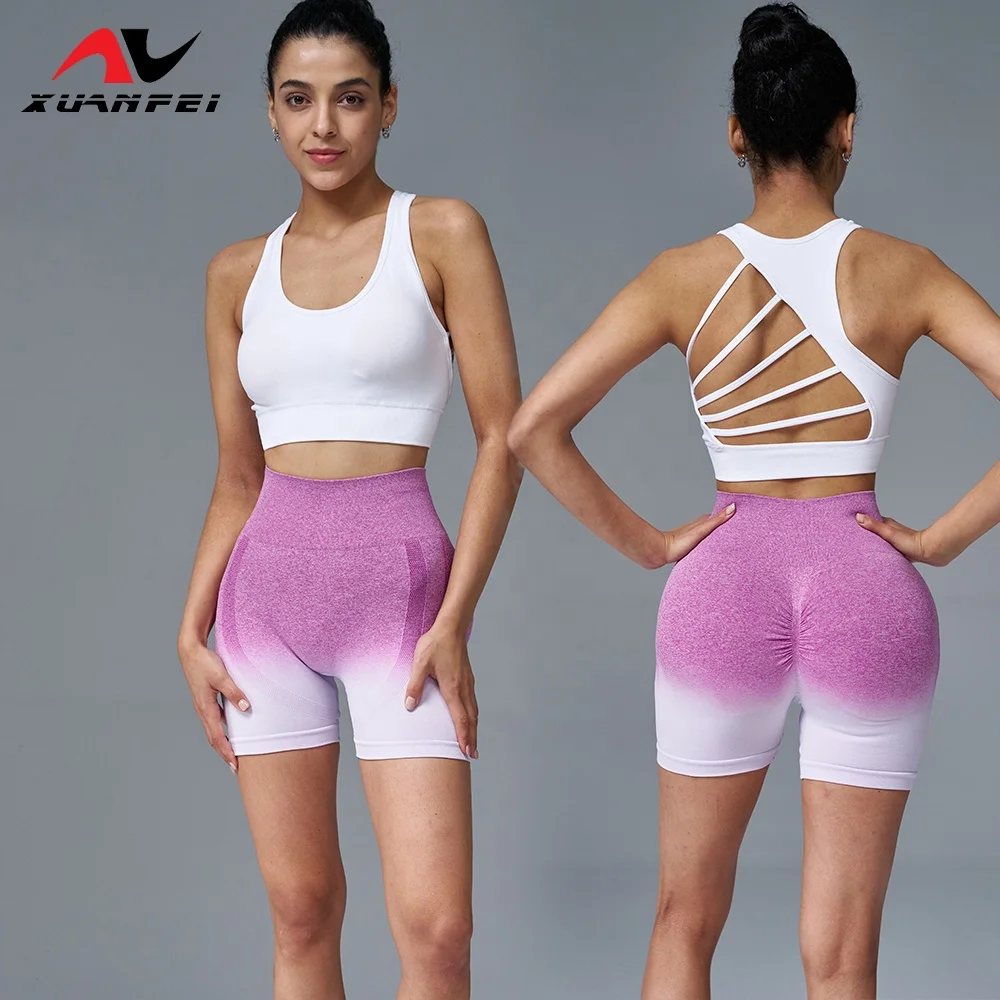 Women's Cycling Clothing Gym Fitness Sets High Waist Yoga Leggings Running Tight Sports Peach Short