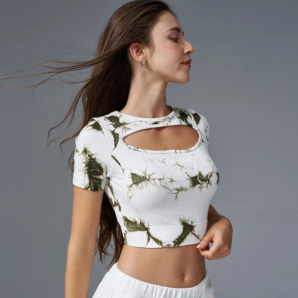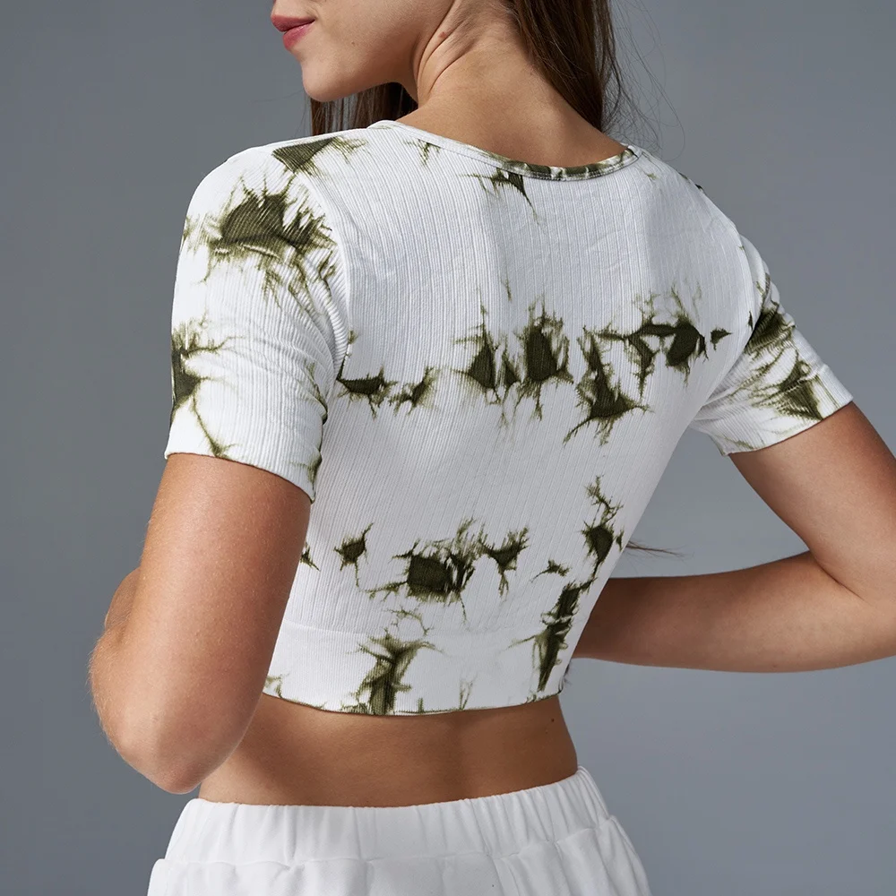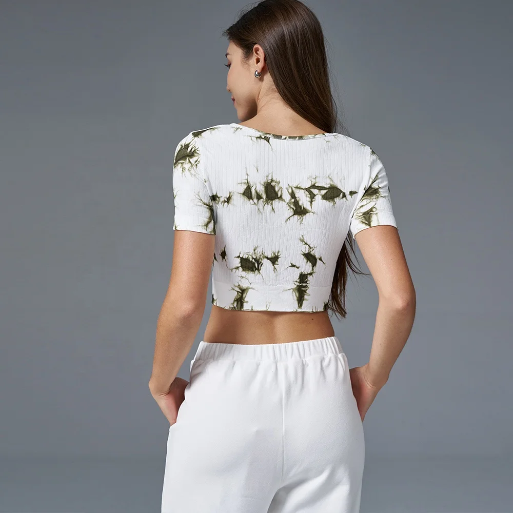 Wholesale Jacquard Fashion Crop Front Sexy Womens Pilates Top Design Colorful Tie Dye Print Top