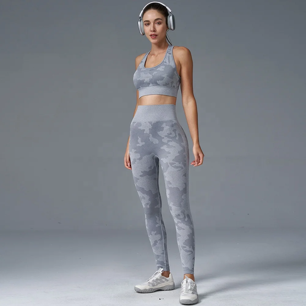 Two Pieces Sports Suit Camo Pattern Yoga Sets Fitness Women Top and Leggings Set Yoga Wear
