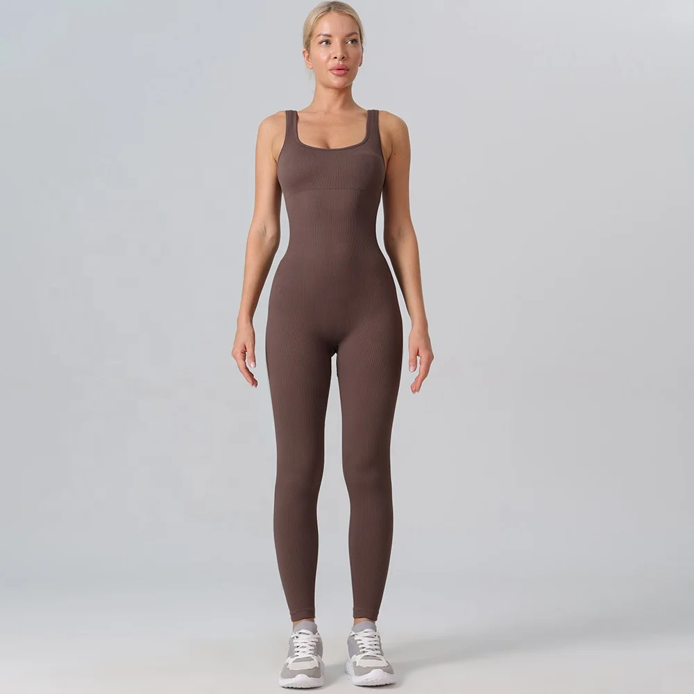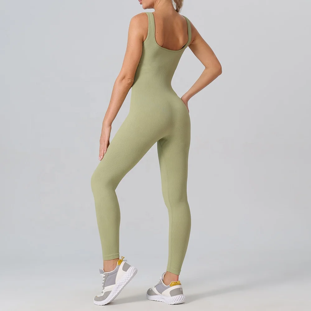 Gym Fitness Pilates Clothing Women's Sports Workout Gym Jumpsuit Leggings Ladies Yoga Ribbed Bodysuit