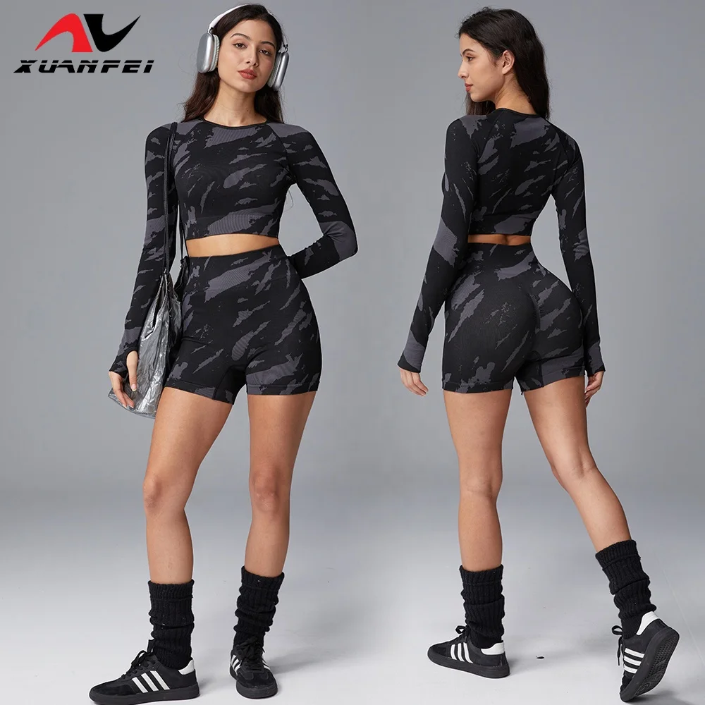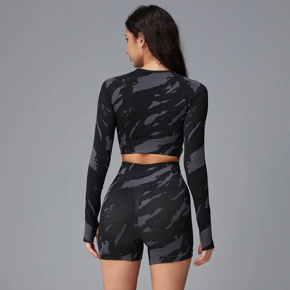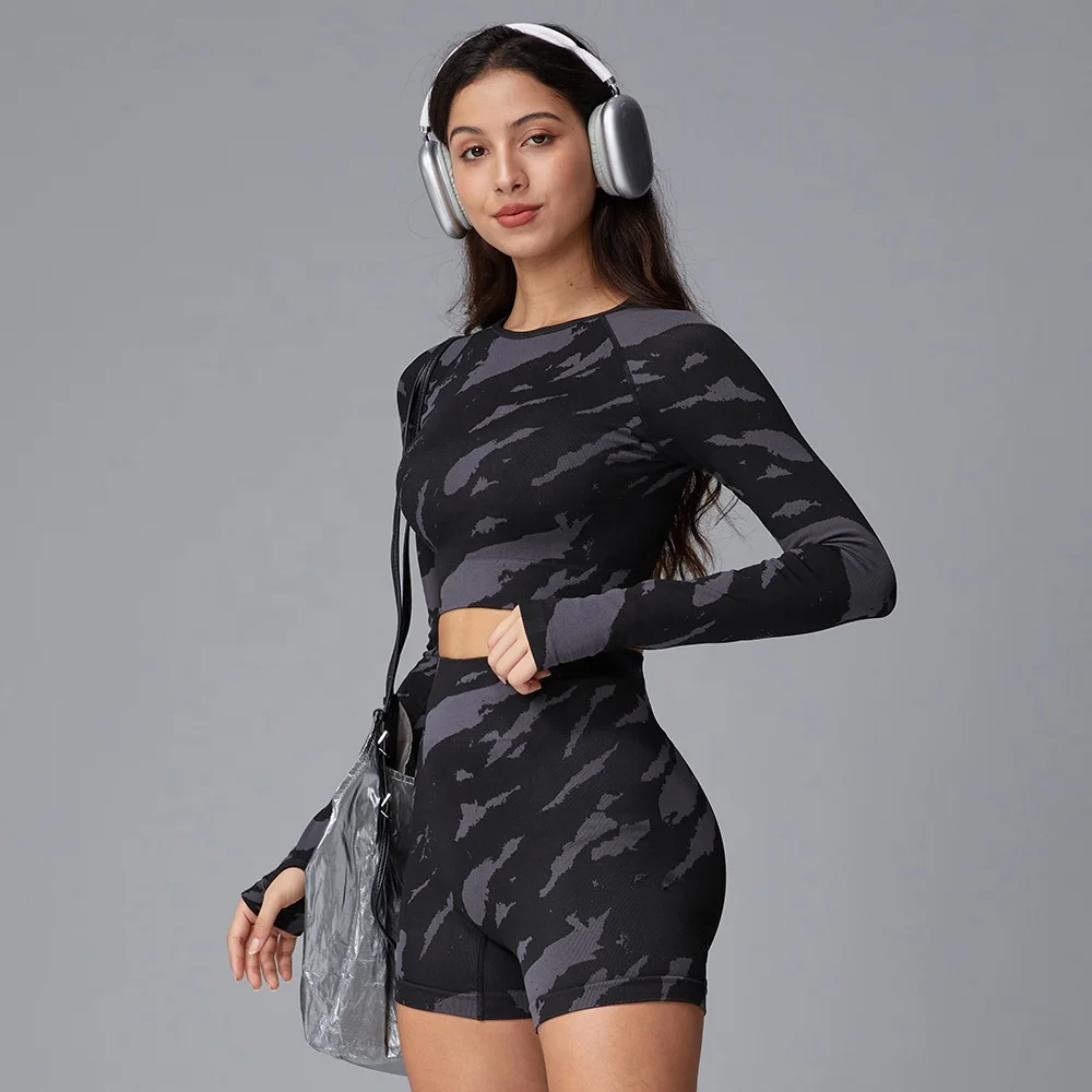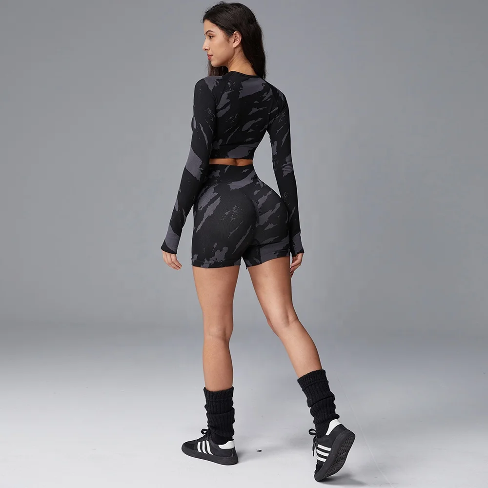 Hot-Selling Personality Trend Black Tie-Dye Breathable Home Leisure Gym Training Yoga Sports Shorts Set