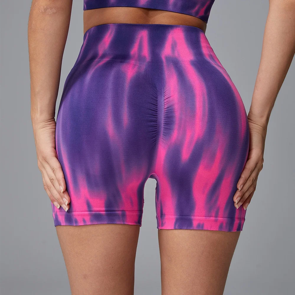 High-Waist Design Elastic Fabric Purple Gradient Quick-Drying Material Fitness Exercise Yoga Shorts