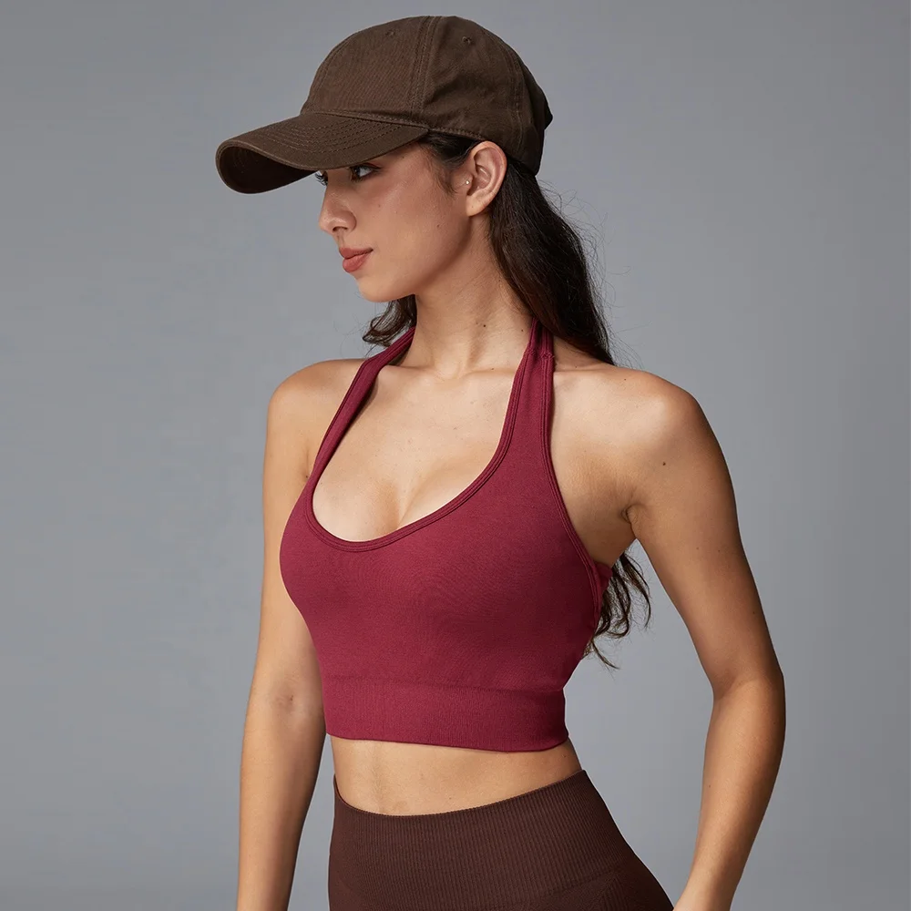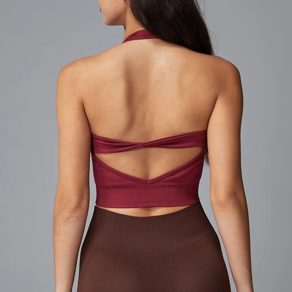 Fashionable Appearance Sexy Fashion Slimming Cut Comfortable Support Red Halter and Beautiful Back Yoga Bra