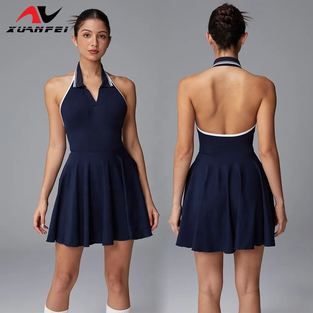Fashion Bestseller Exquisite Sports Leisure Dry Quickly Seamless Breathable Slimming Simple Blue Tennis Dress Yoga Jumpsuit