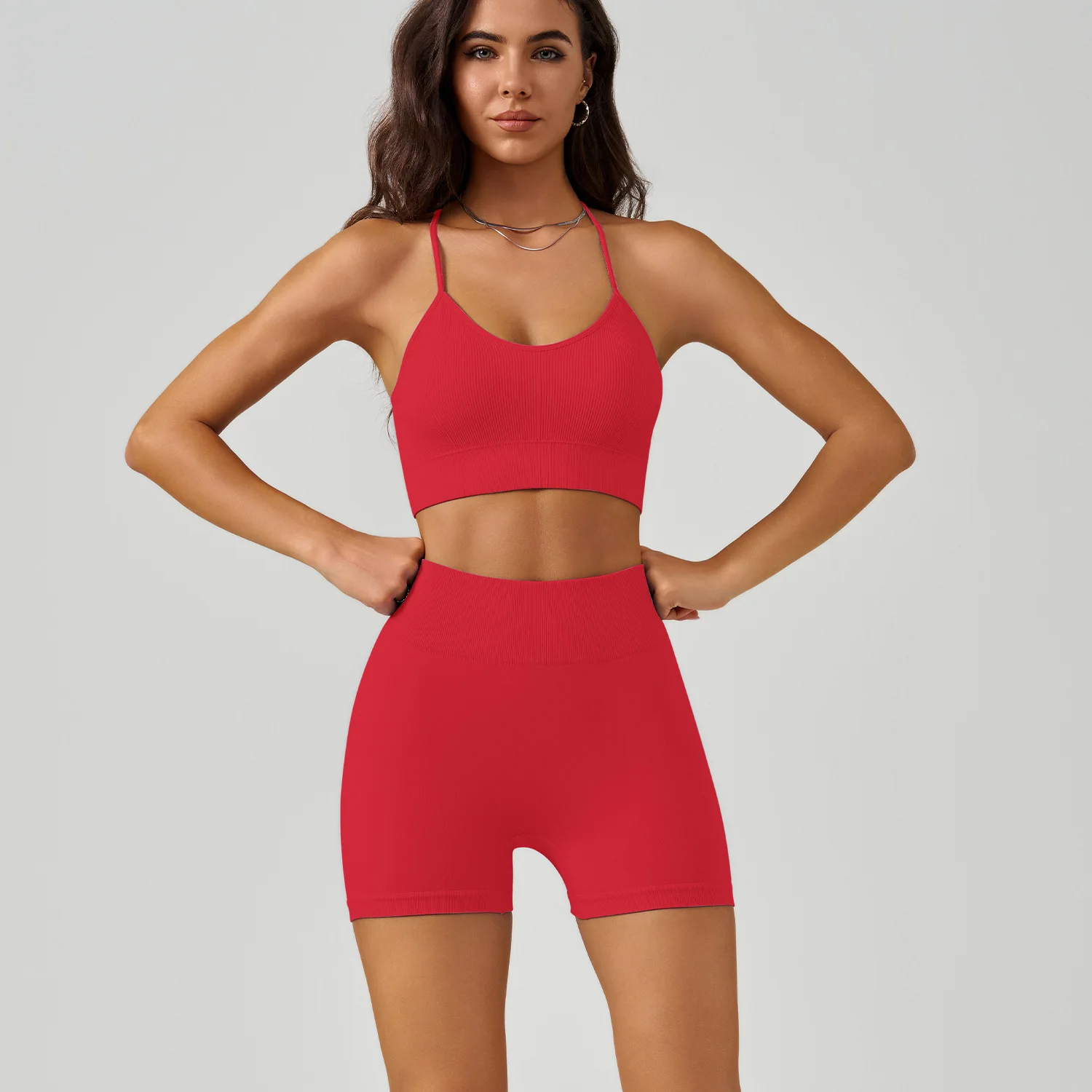 Custom Logo Fitness Clothing Gym Sports ActiveWear 2 Pcs Women Athletic Seamless Yoga Bra Shorts Gym Sets