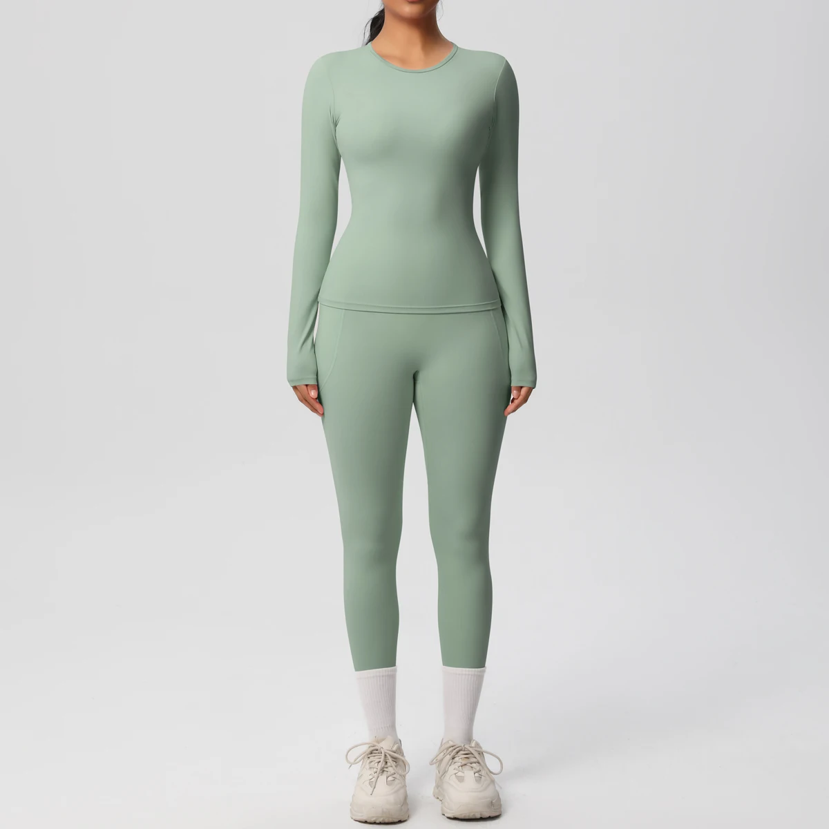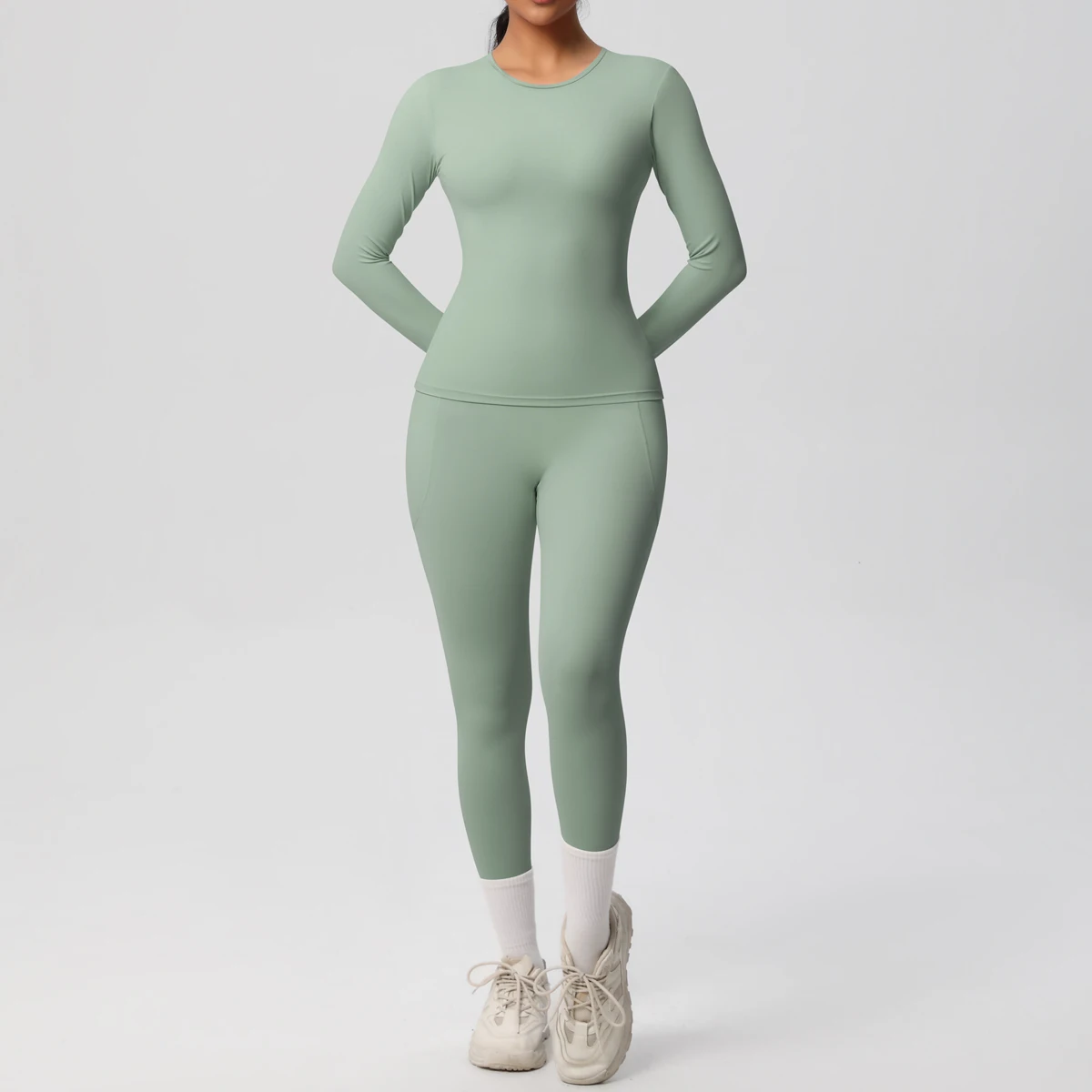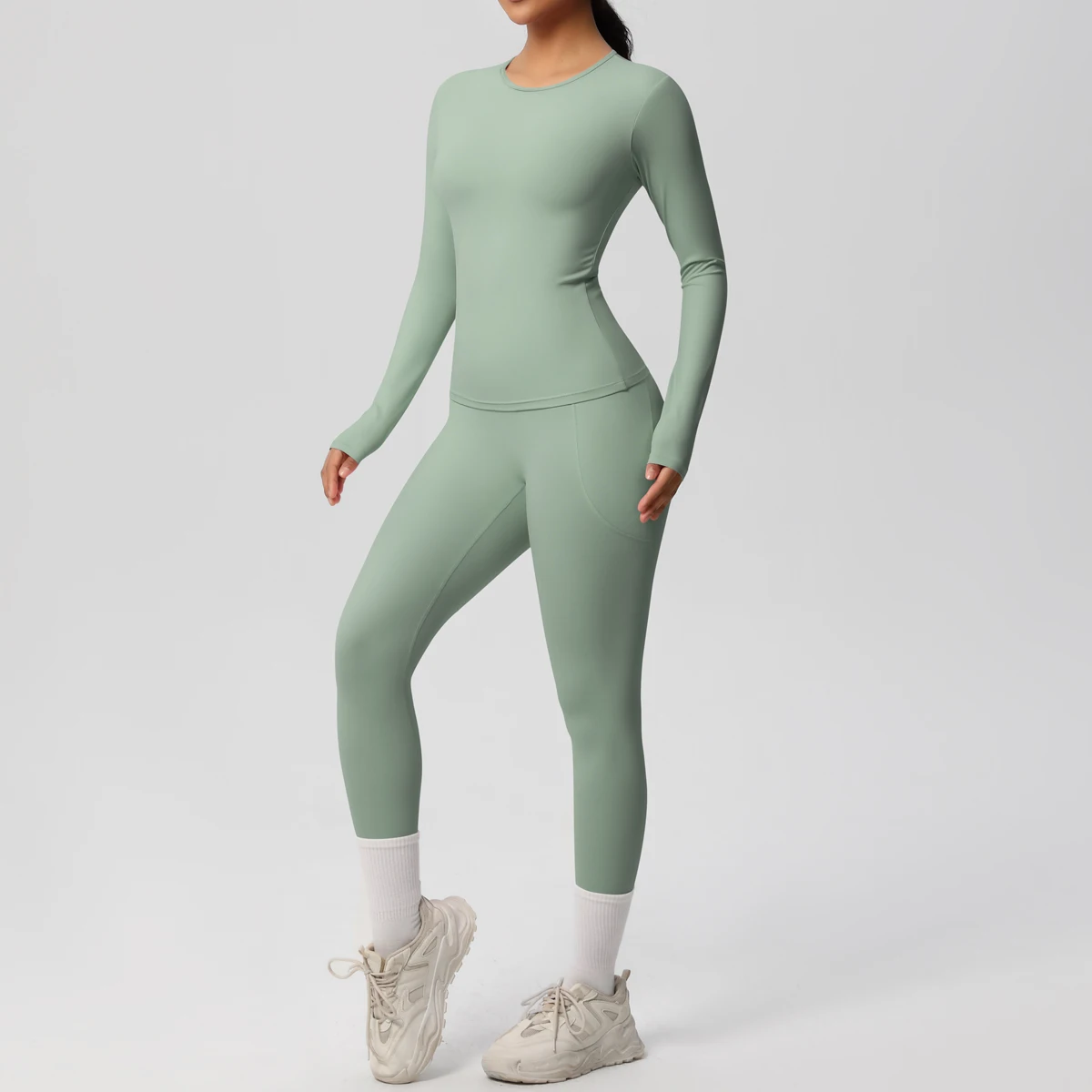 New Women Sports Leisure Set High Waist Wide Leg Warm Yoga Tracksuit Tight Quick Dry Sweat Absorption Long Sleeve Fitness Set