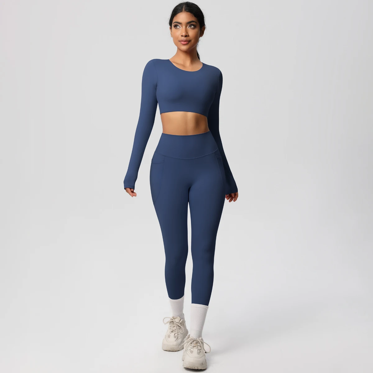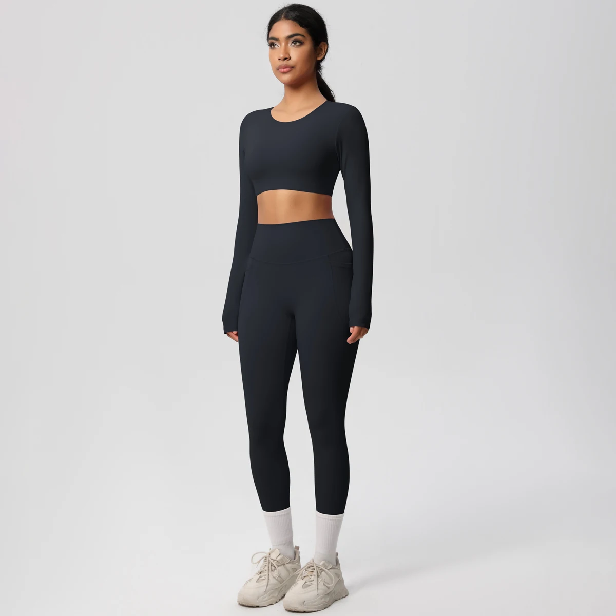 Custom High Quality Solid Color Double Sided Brushed Breathable Stretch Yoga Set Sport Running Fitness Two Piece Set