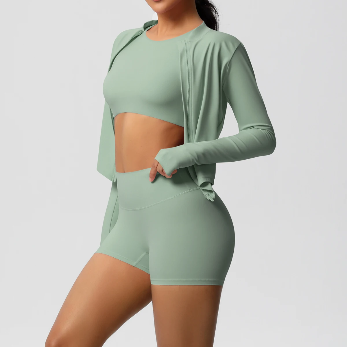 YISHENHON New Arrivals Quick-drying Women's Tight Running Sports Fitness Yoga Jacket Activewear Zip Long Sleeve Workout Crop Top