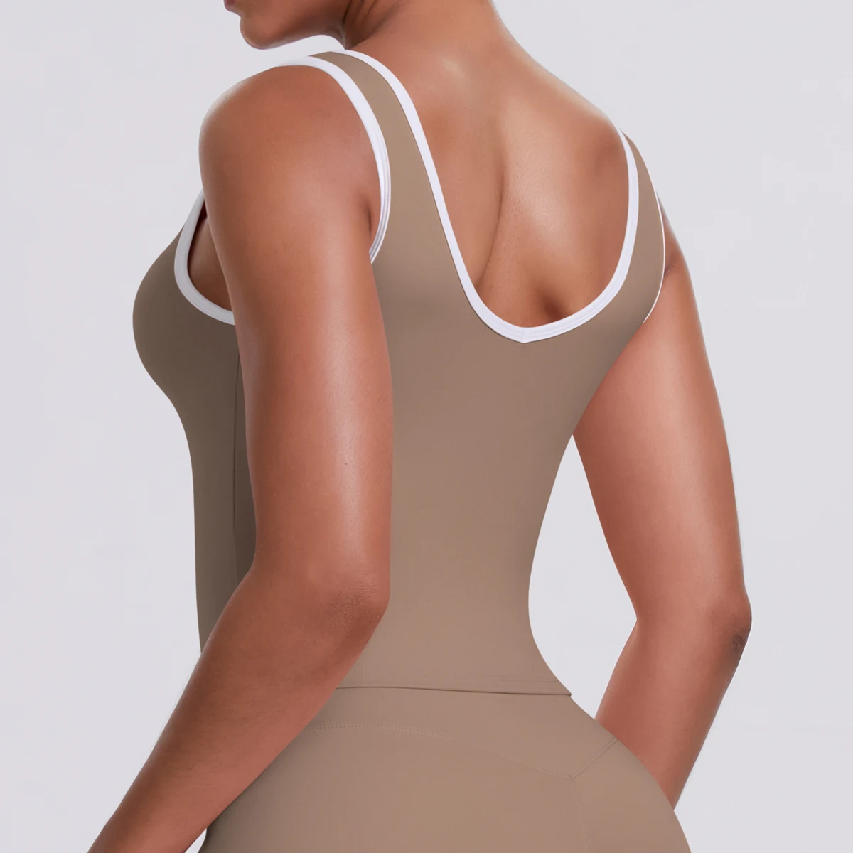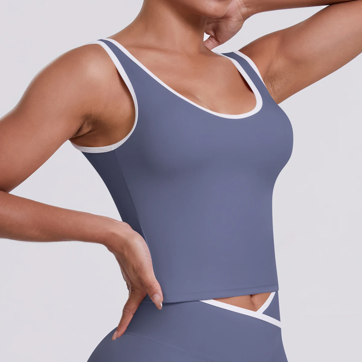 High Quality Women's Sports Vest Breathable and Seamless Yoga Tennis Fitness Exercise Apparel with Front Logo Backless Design