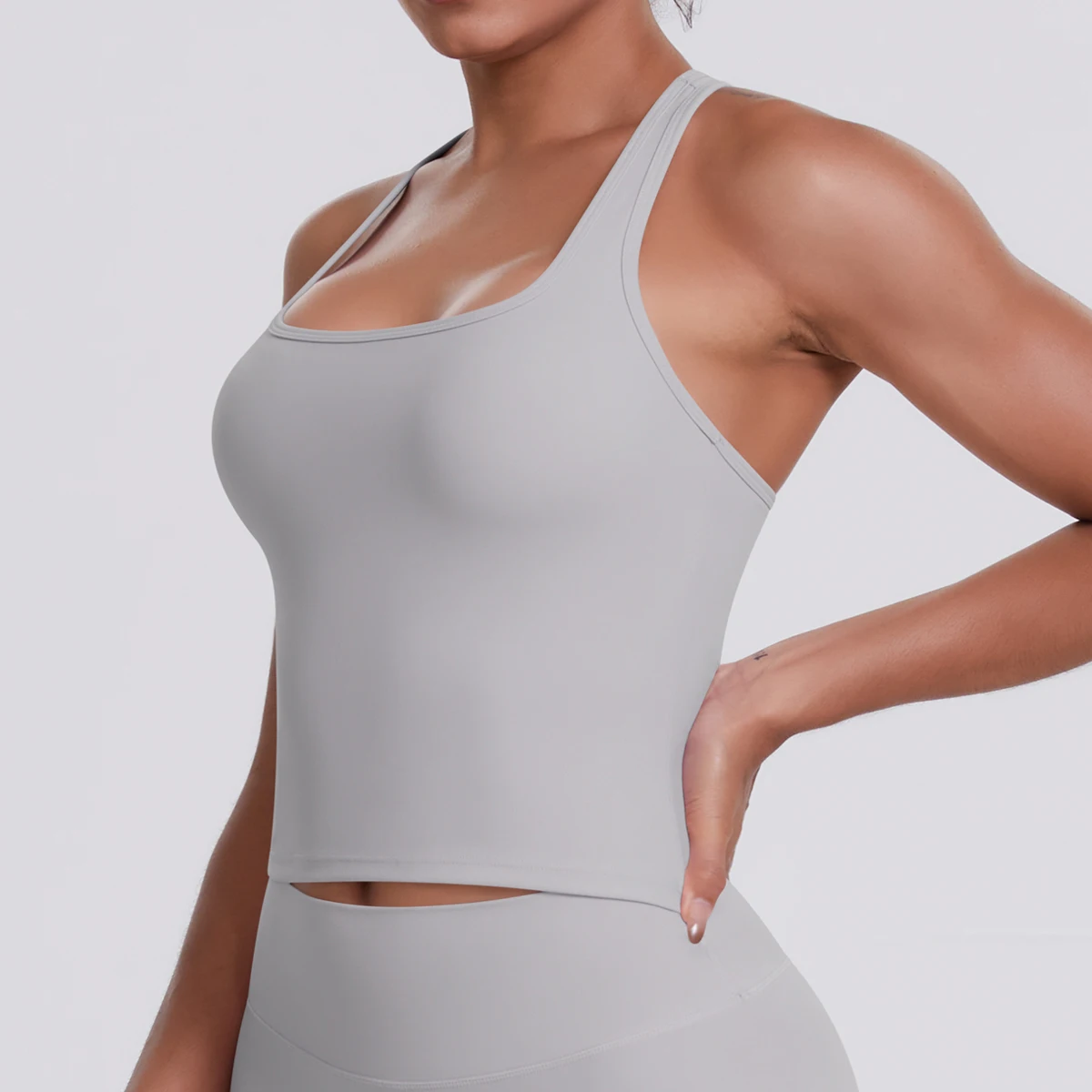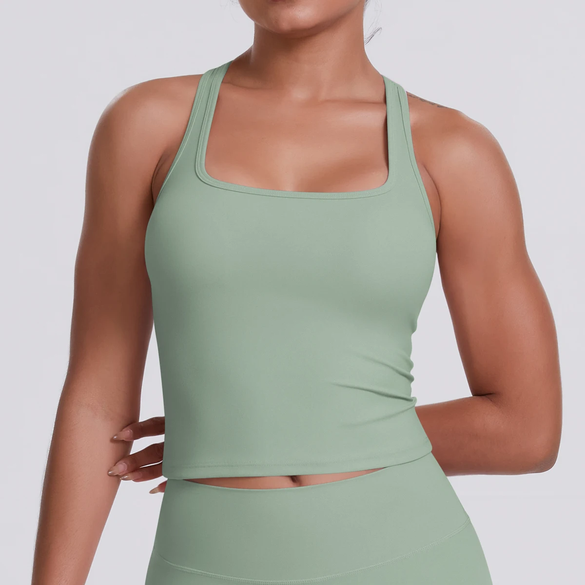 Women's I-Shape Sports Vest Solid Color Quick-Dry Cooling Fabric Workout Tank Top Yoga Wear